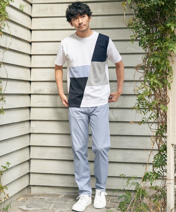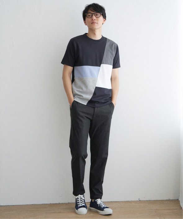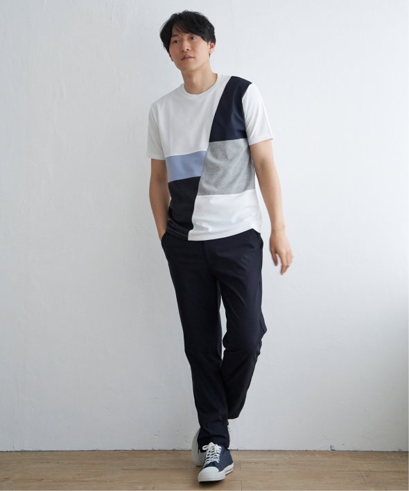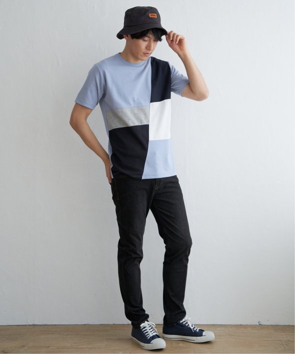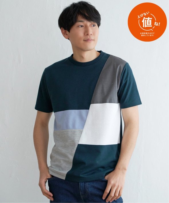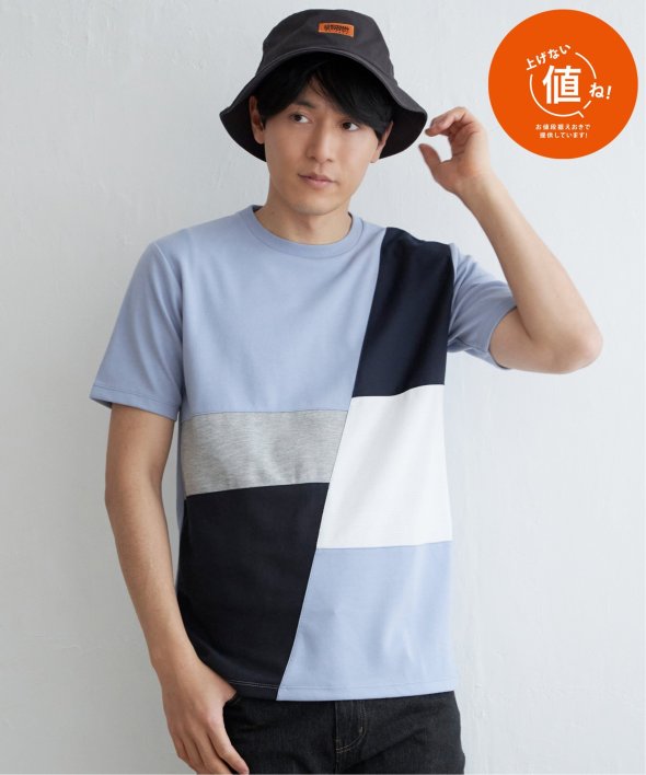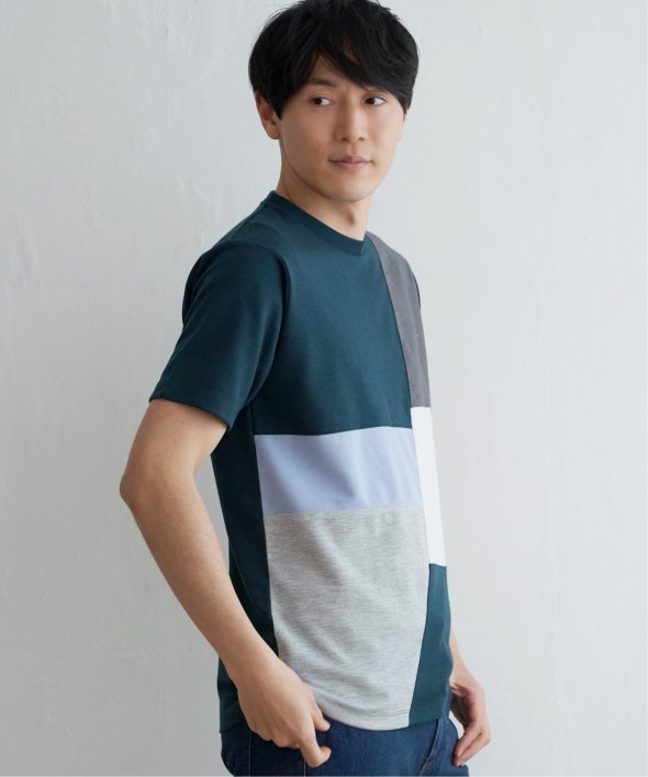 ikka で根強い人気となっている「ブロックス」シリーズのTシャツ。巧みな異素材使いで、夏の一枚着に活躍します。【素材】適度なハリ感のポンチと異素材の組み合わせ。【デザイン】3種の異素材を組み合わせた半袖の切り替えTシャツ。サイズ感は着回しのきくレギュラーサイズです。【ikkaポイント】ポンチ・リップル・布帛の3種類の素材を使用した、ikka で人気の切り替えシリーズです。