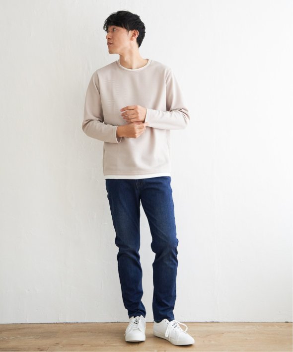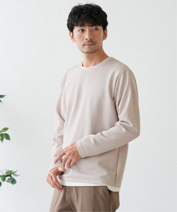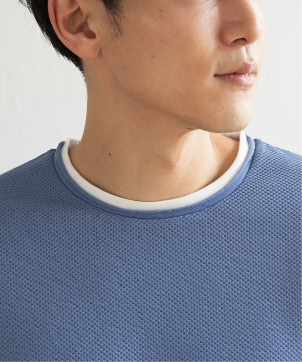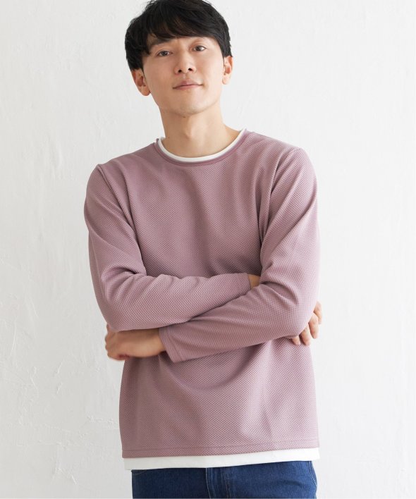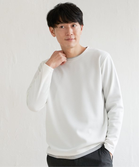 身頃は表情のあるパイナップル素材を使用しており、シンプルながら上品な印象のフェイクロンTです。