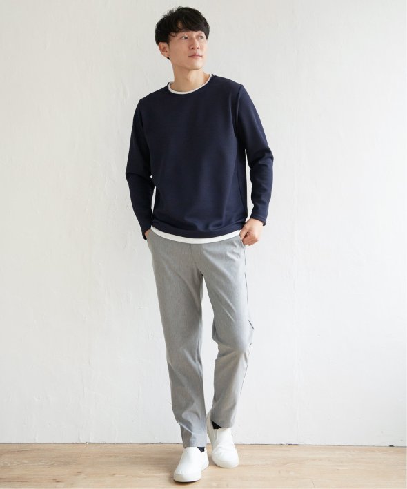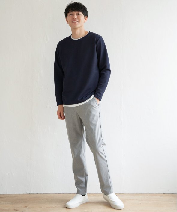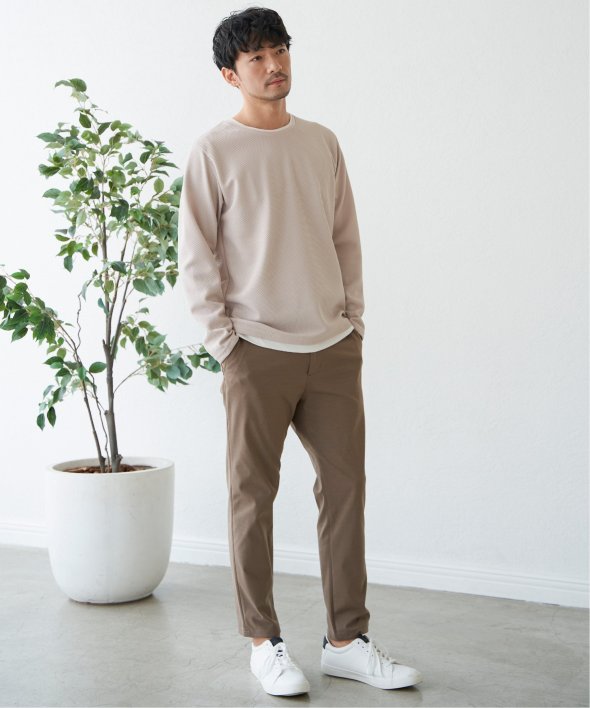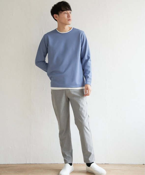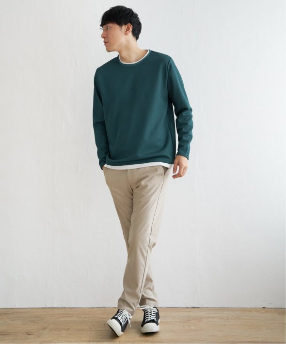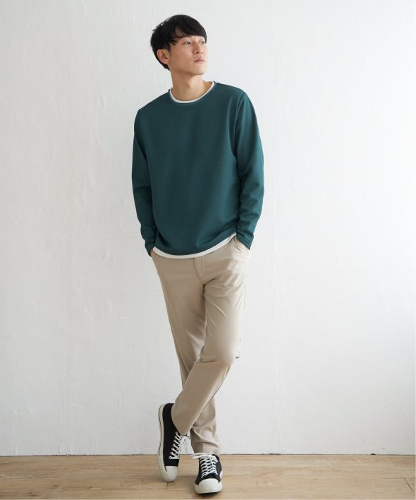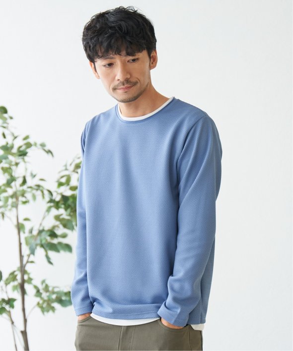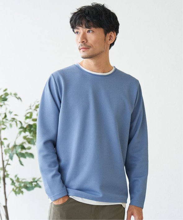 シンプルな無地ロンTは、表情のある生地感とレイヤード見えなデザインがポイント!