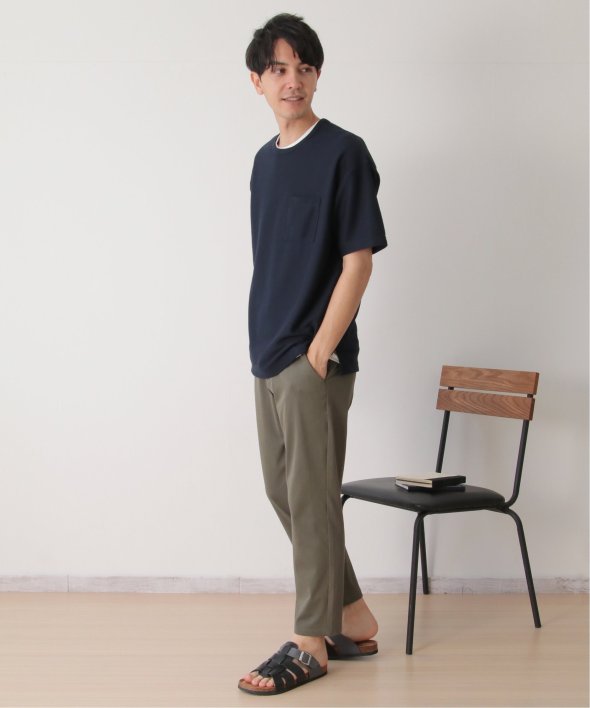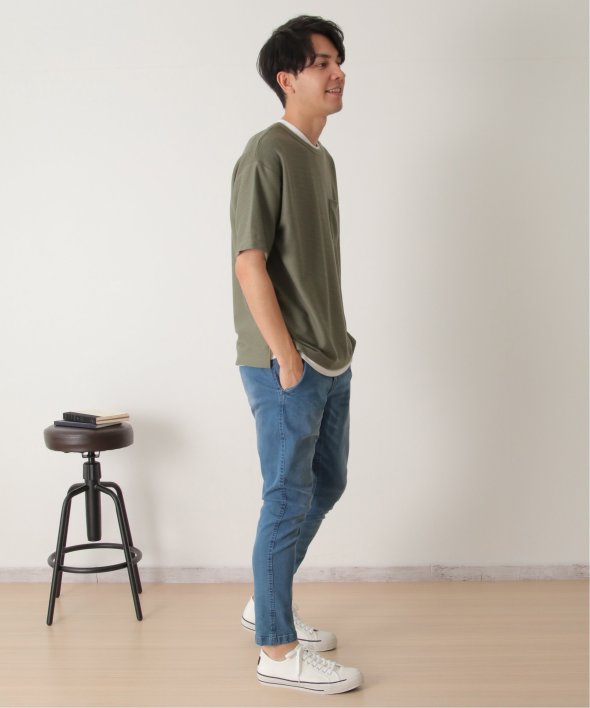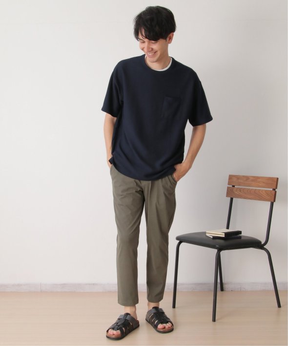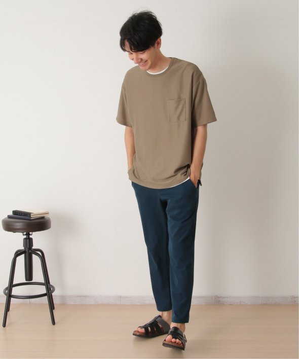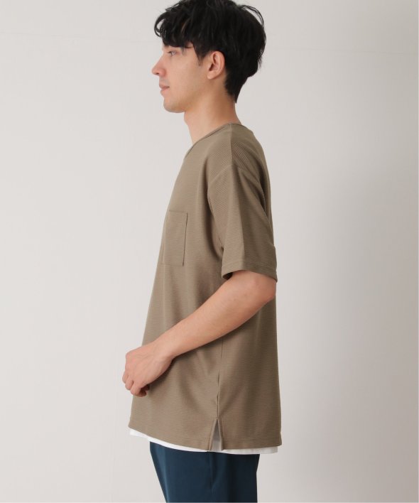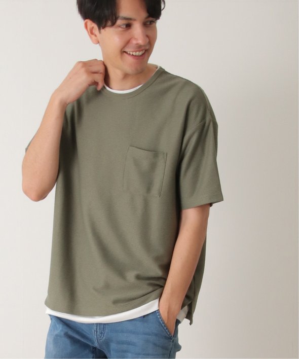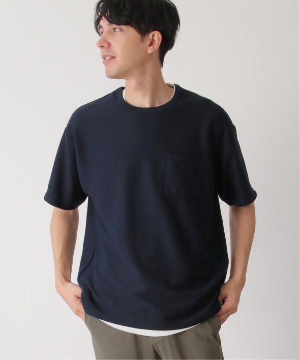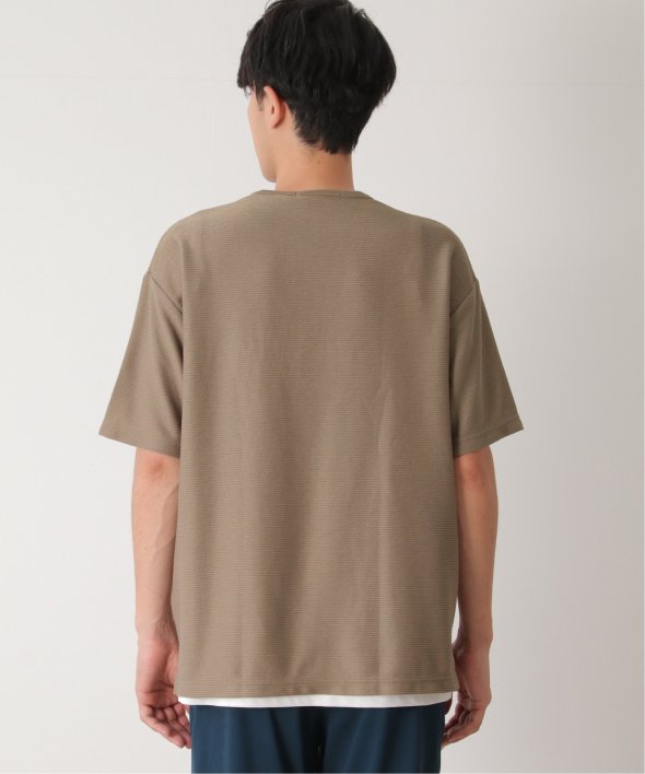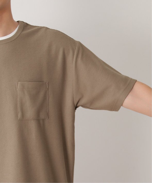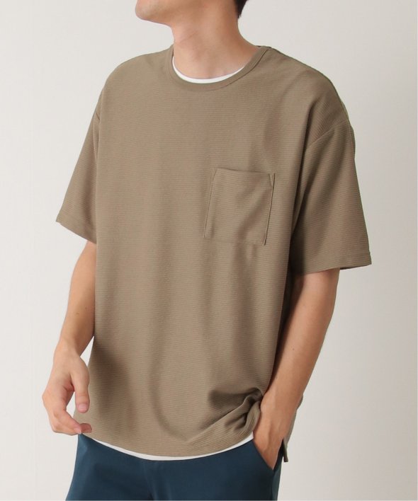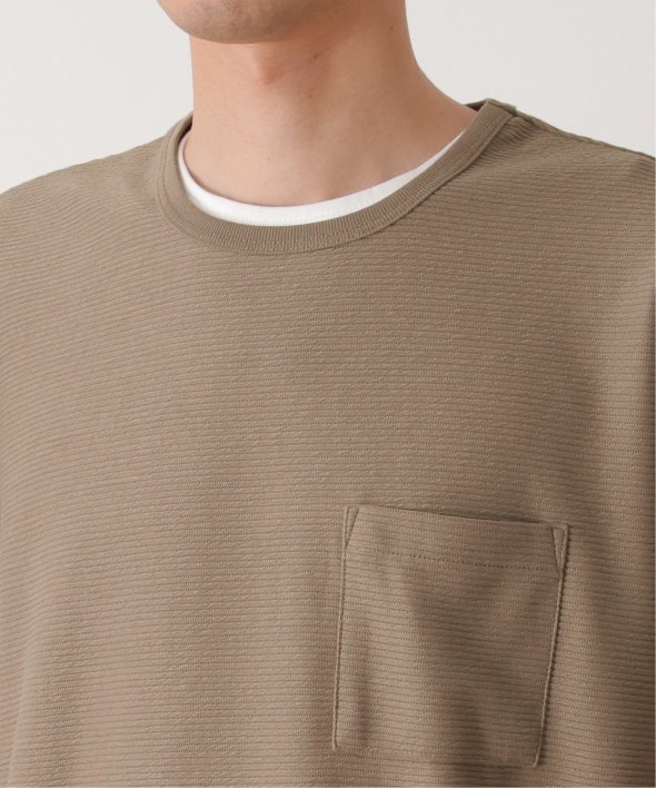 アウターのポケット付きTシャツは無地ですが、表面に凹凸のあるリップル素材を使用しています。