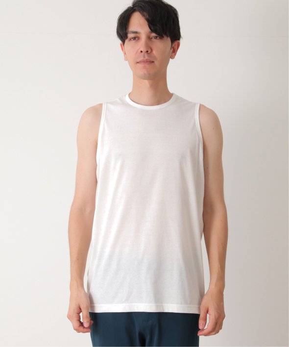 インナーのタンクトップは、Tシャツの裾から少し見えるような着丈の設定にしているのでレイヤード(重ね着)感が表現できます。
