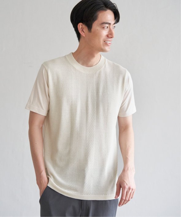 前身頃は編地切り替えのニット、袖と背中はTシャツ生地で切り替えた異素材ドッキングのTシャツ。ニット特有の立体感がシンプルな装いに奥行きを与え、一枚で着てもサマになります。当サイトの春夏物商品の期間限定割引価格につきまして、春夏物は基本的に10月10日以降は一定期間正価での販売価格に戻させて頂きます。あらかじめご了承くださいませ。こちらの商品はセール商品です。セール商品は、注文取り消し・返品・交換対象外となります。また、セール価格は予告なく変更になることがございます。ご了承ください。