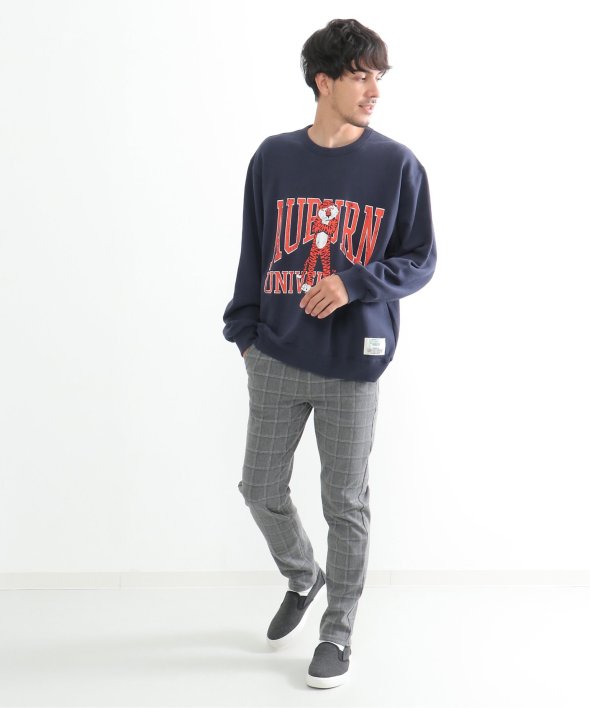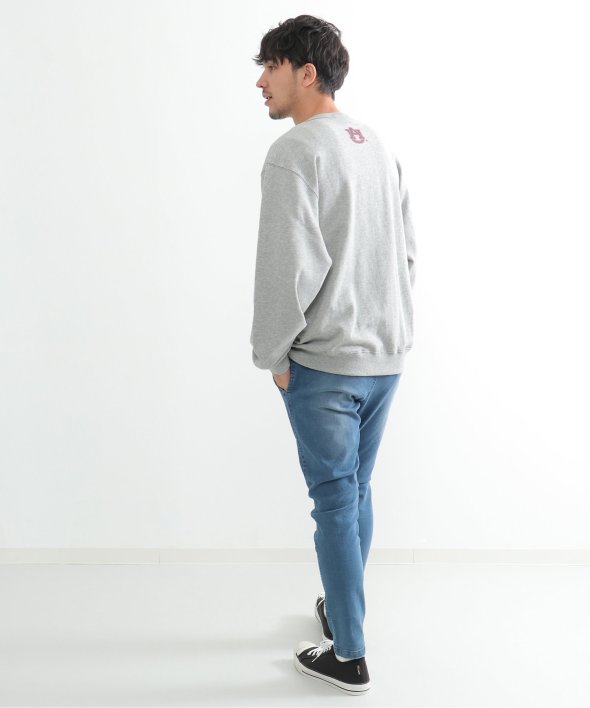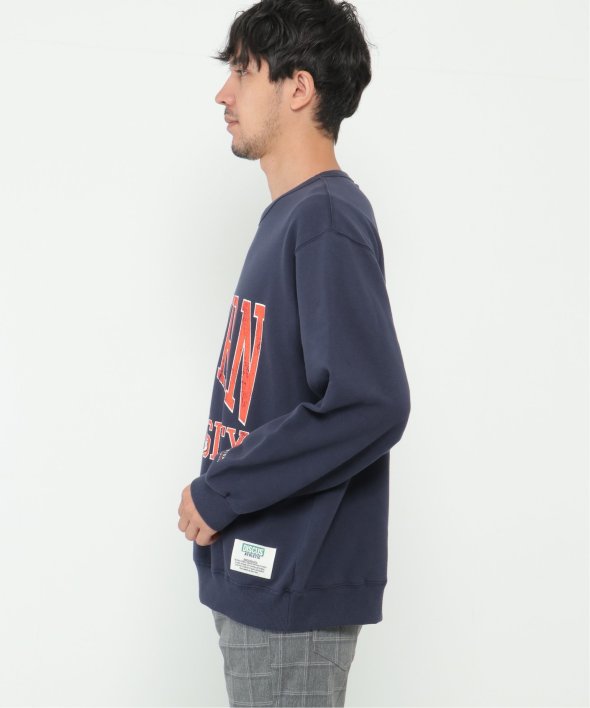 古着のようなデザインのカレッジスウェット。