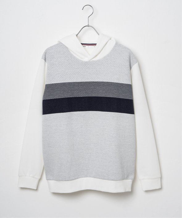 前身頃がパネルボーダーになったプルオーバーパーカー。