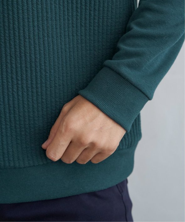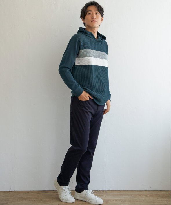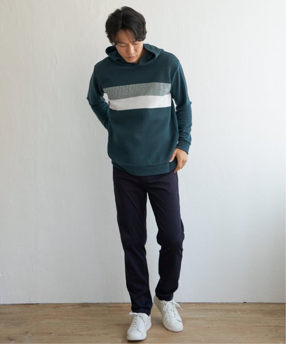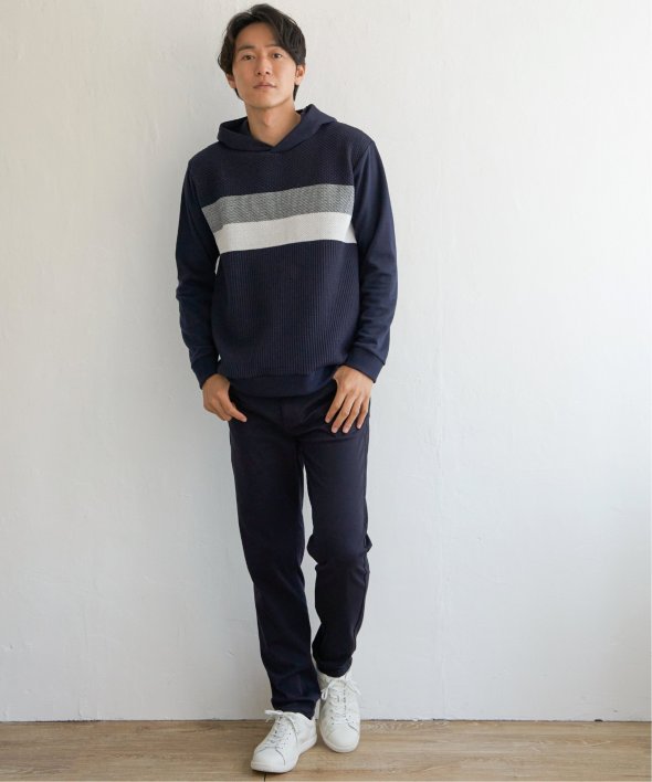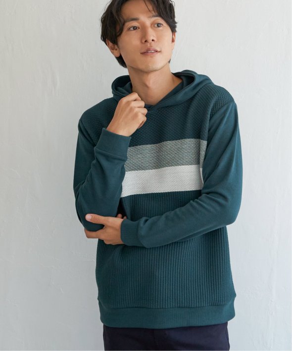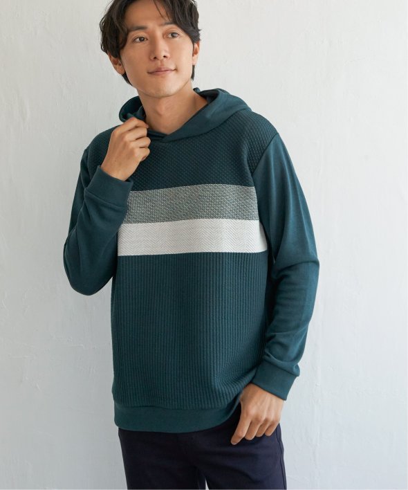 ikka で根強い人気となっている、異素材×ブロッキングで切り替えた「ブロックス」シリーズのパーカーです。