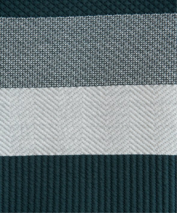 凹凸のあるふくれジャカードと、フラットなポンチの異素材を組み合わせているところが ikka ポイントです。