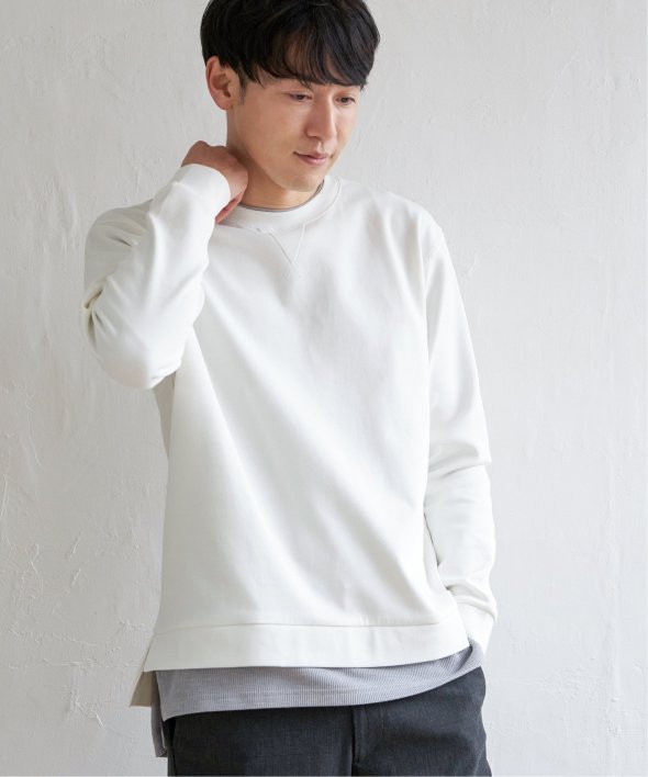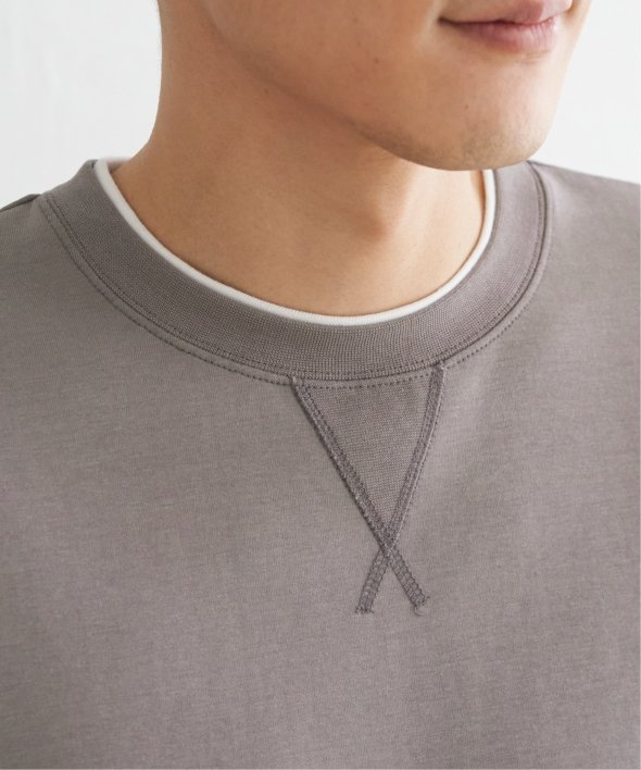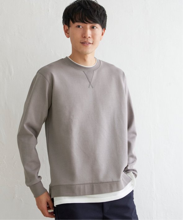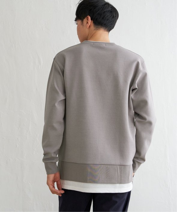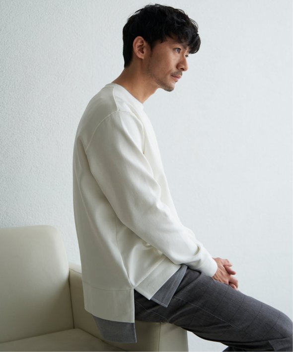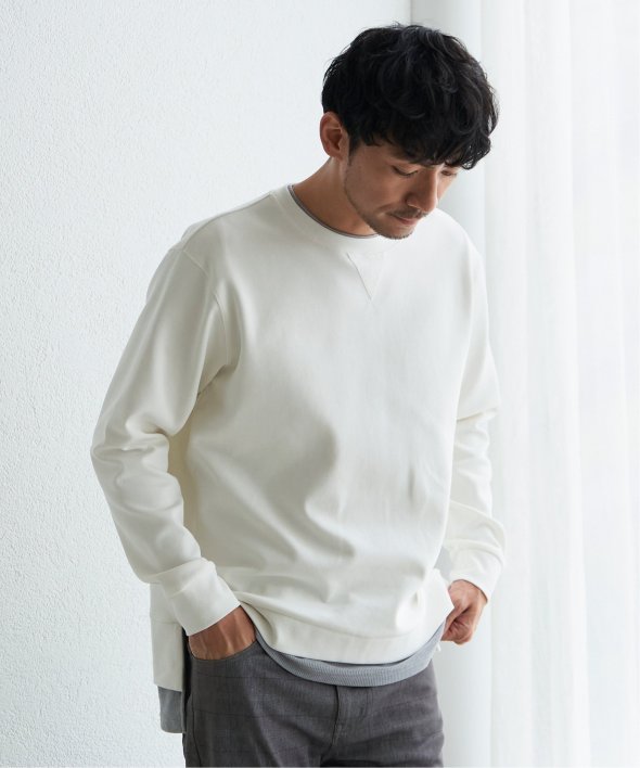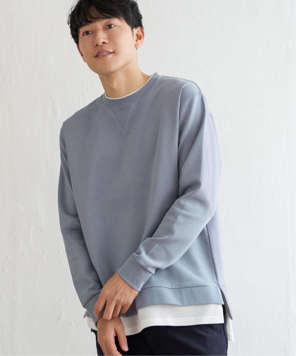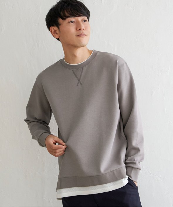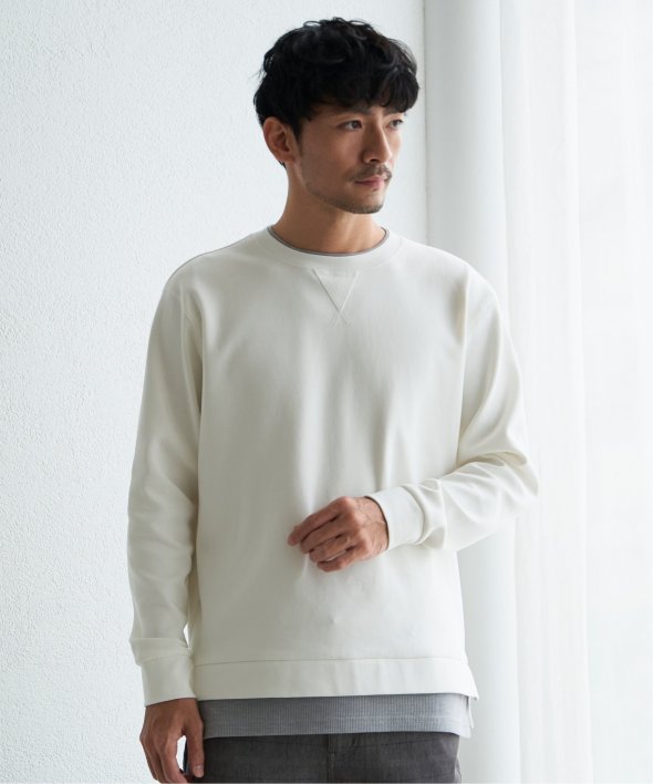 襟周りと裾がフェイクレイヤードになった、クルーネックのプルオーバー。