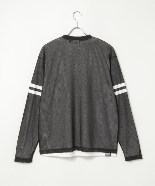 メッシュ生地のロンTと、無地のインナーがセットになったアンサンブルです。