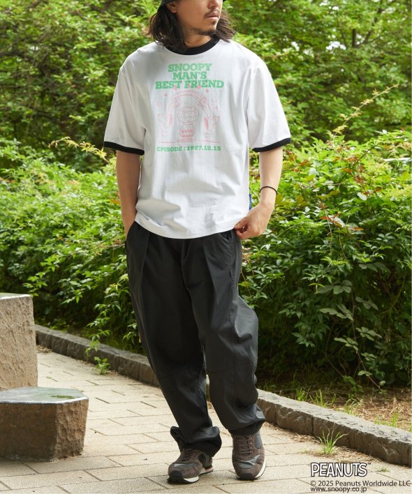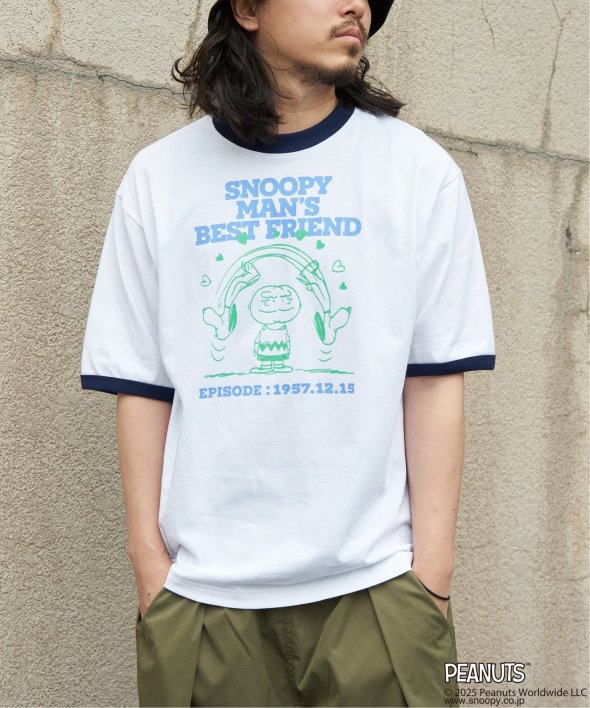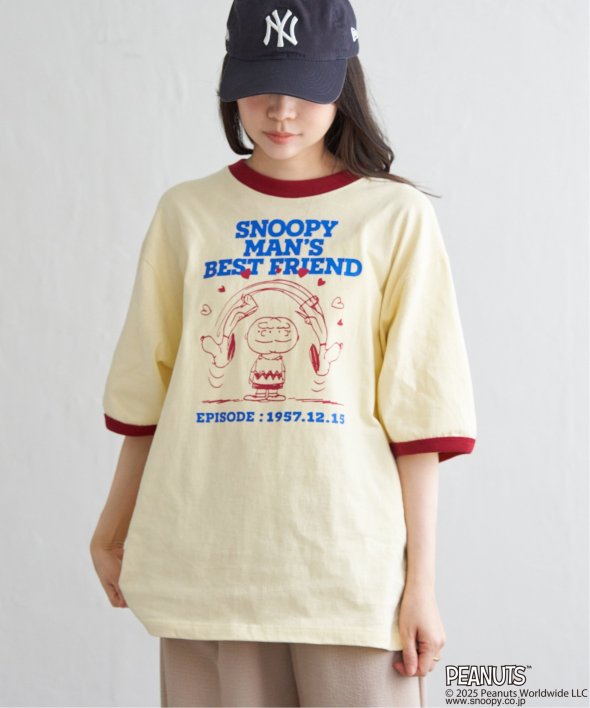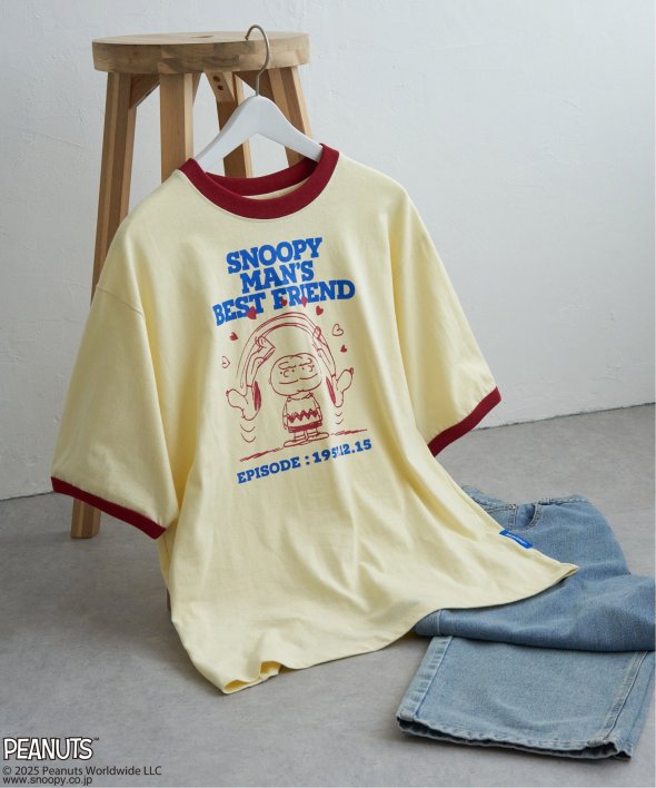 スヌーピーと仲間たちの“友情”がプリントされたリンガーTシャツ。