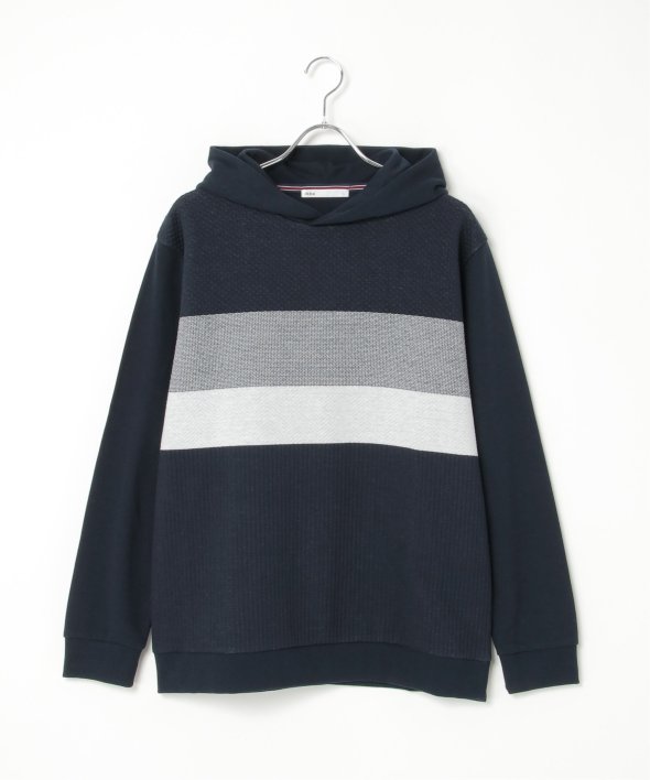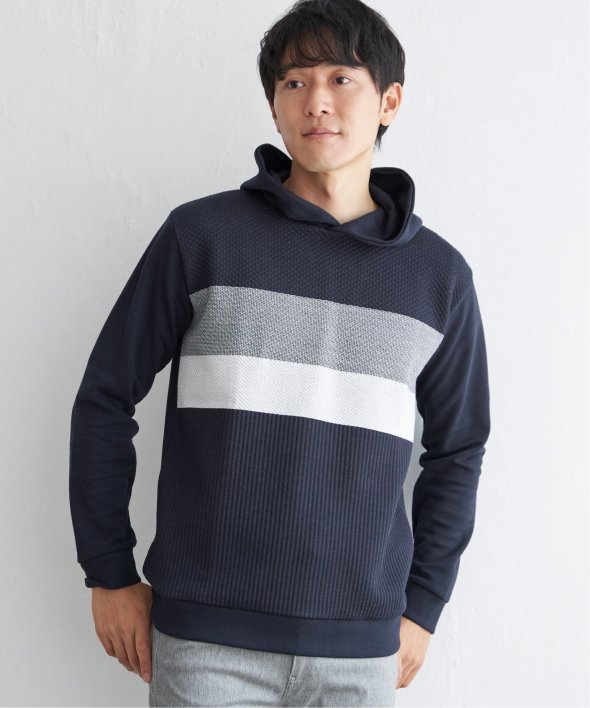 前身頃がパネルボーダーになったプルオーバーパーカー。