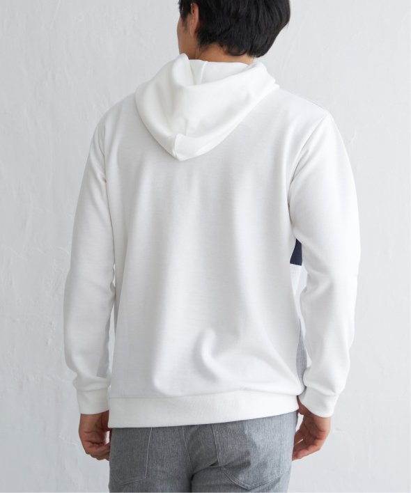 前身頃が配色デザインになったプルオーバーパーカー。