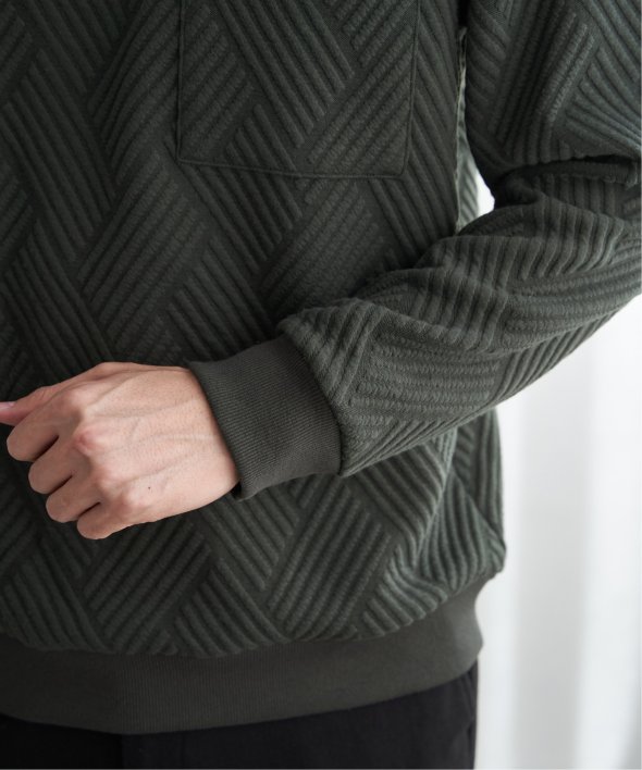 表面に凹凸のある膨れジャカードを使用したプルオーバー。