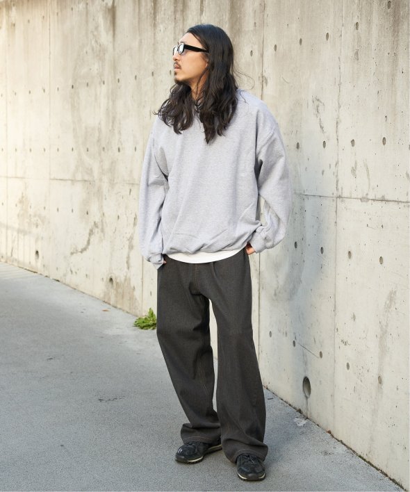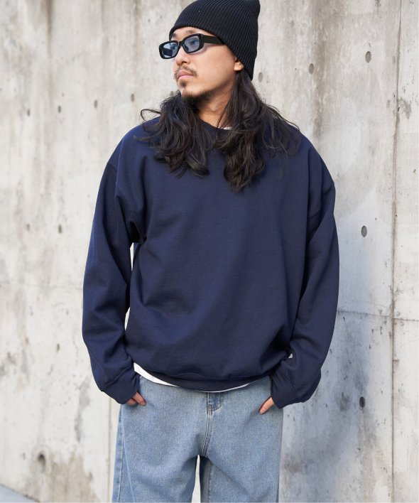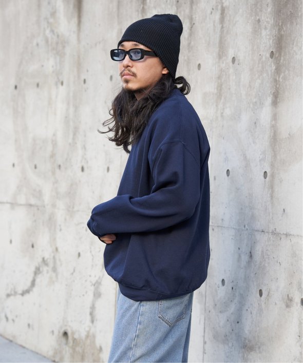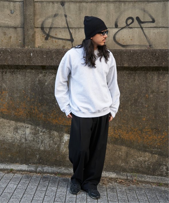 シンプルなクルーネックのスウェット。