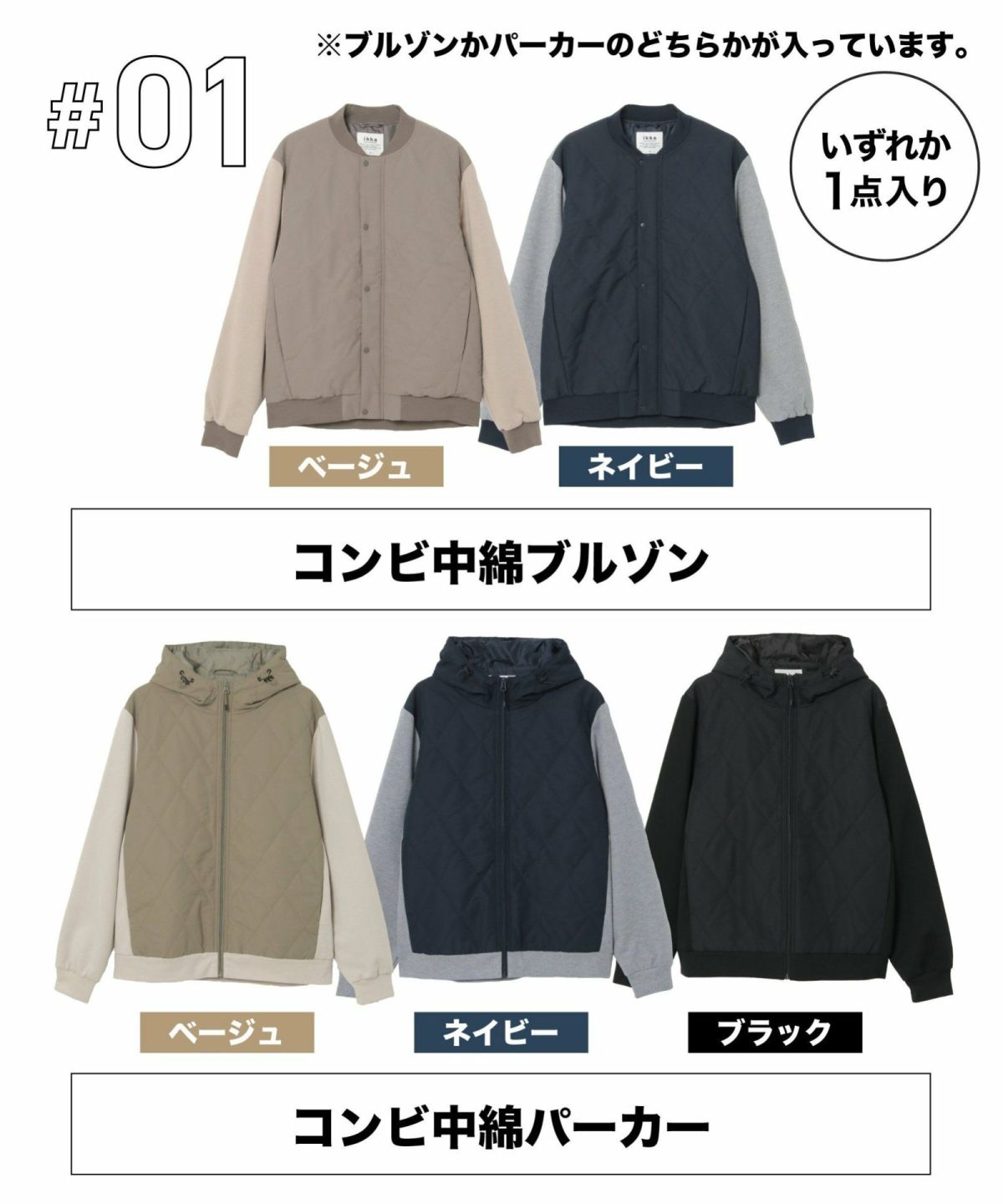 ikka 予約 2026福袋 他の画像を見る 着回し易い薄綿アウターの入った福袋は初の大容量6点セット! 【2026年福袋】ikkaメンズ福袋 A ¥ 7,700 税込 カートに入れる お気に入りに登録する