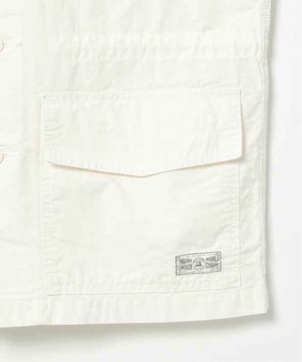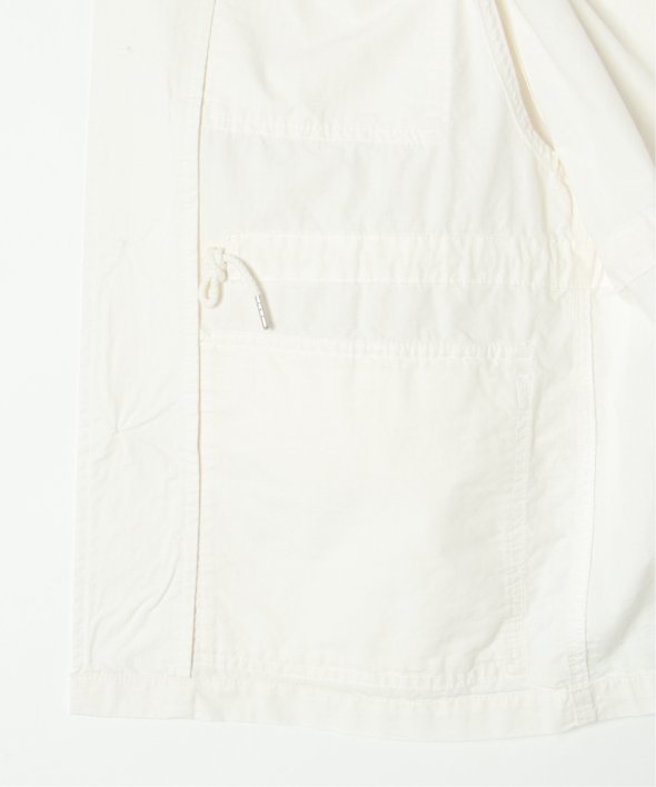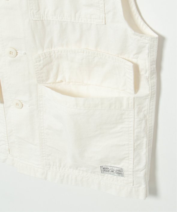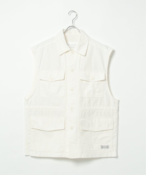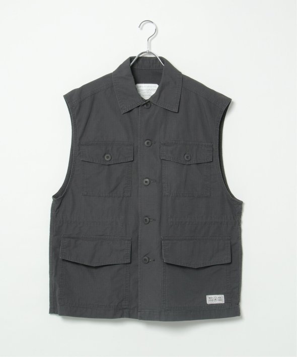 格子状に織り込まれたリップストップ生地・大き目のフラップ付きポケットがミリタリー感溢れるベスト。