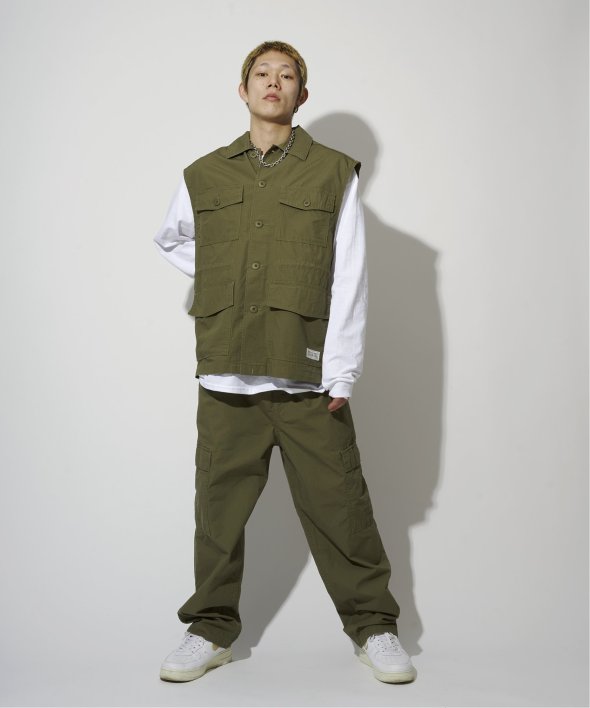 ミリタリーベストの中でも癖のないシンプルなディティールなので、あらゆるコーディネートに馴染みやすく、まら初めての方でもトライしやすいデザインです。