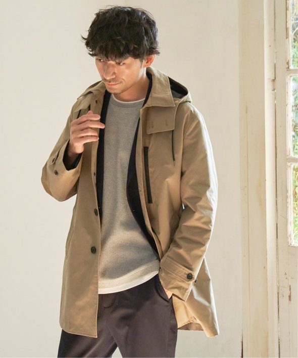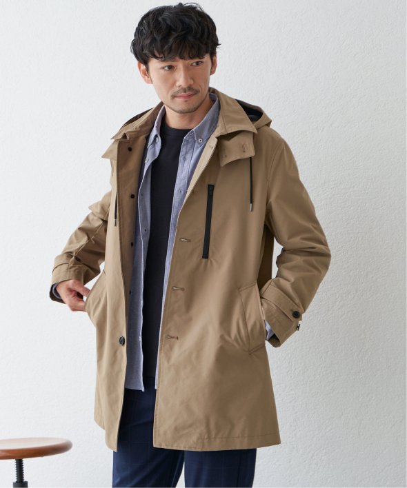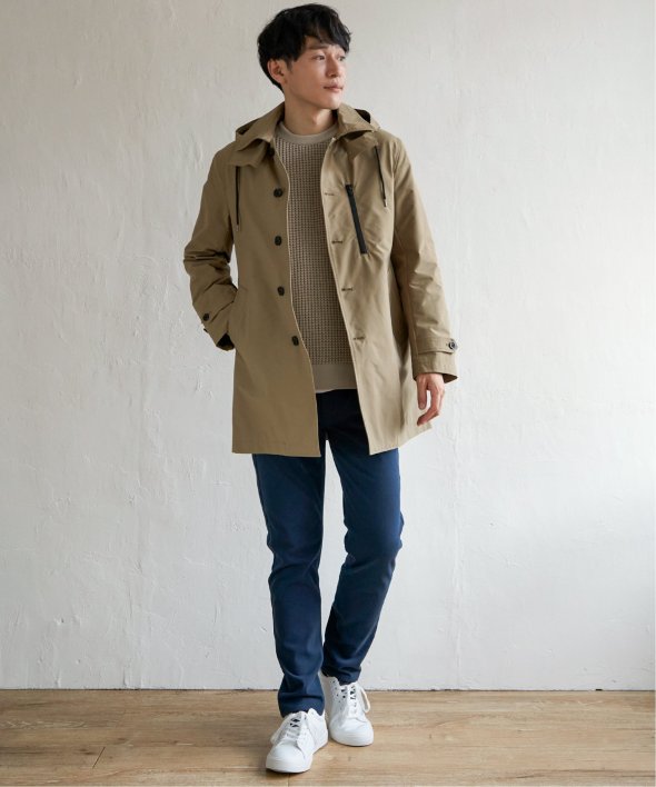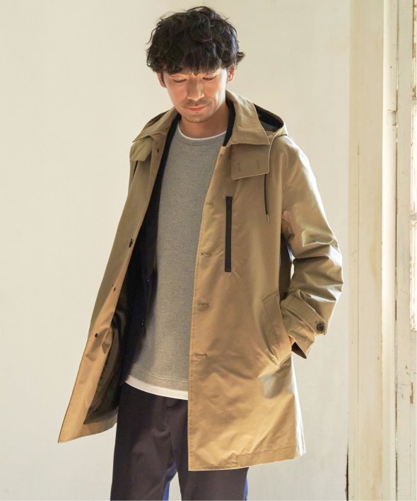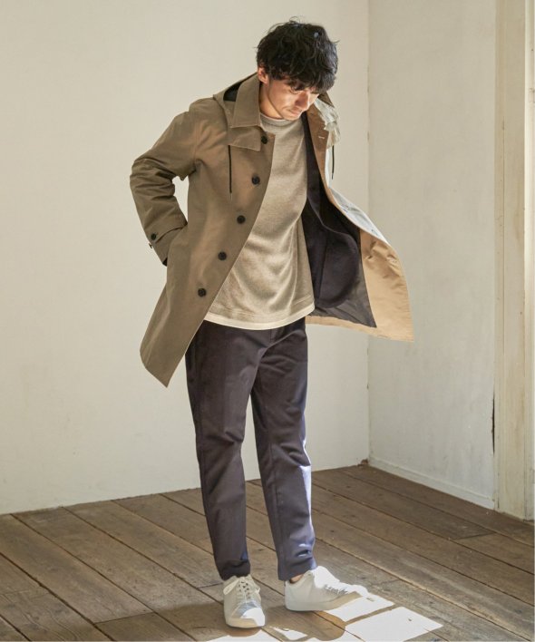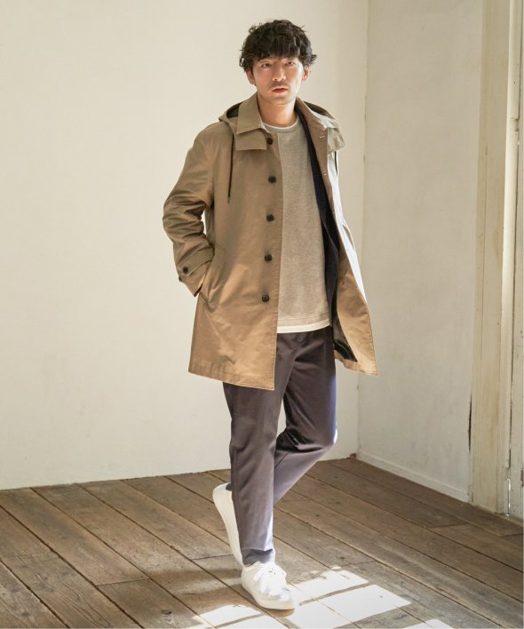 昨年も人気だった撥水素材のステンカラーコートが今年も登場。
