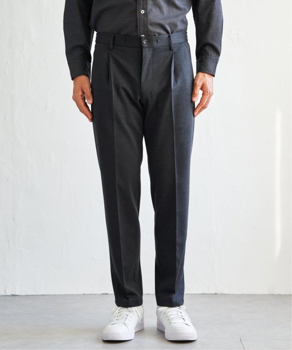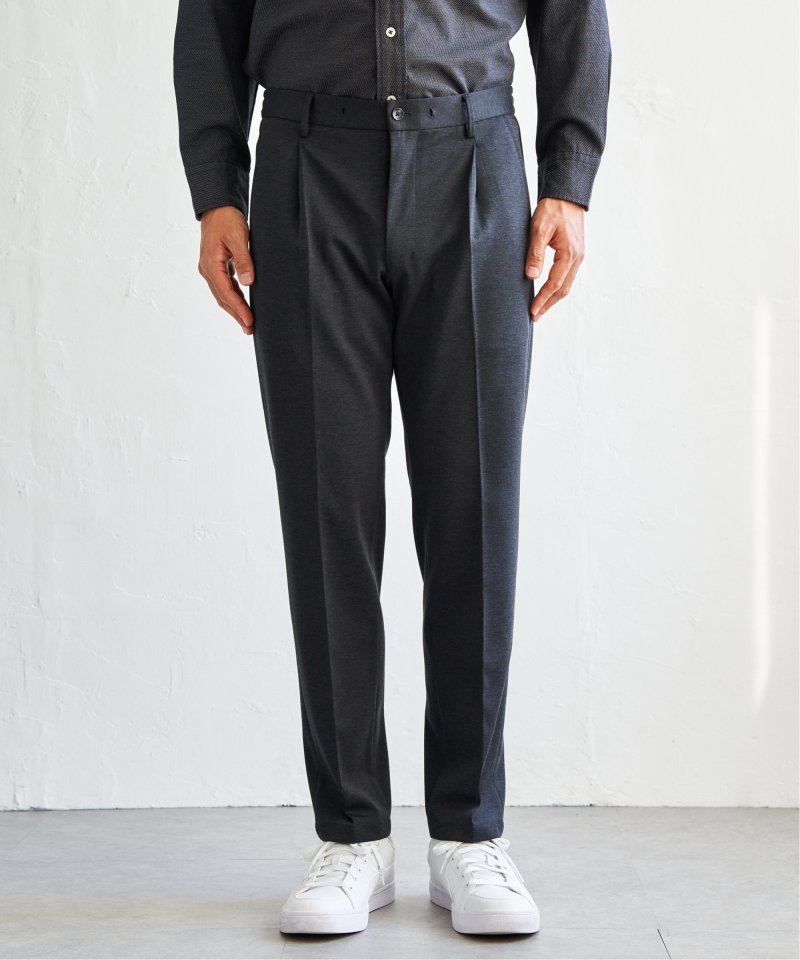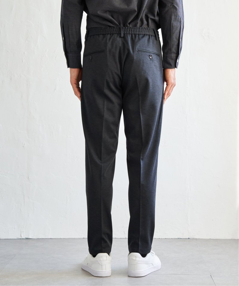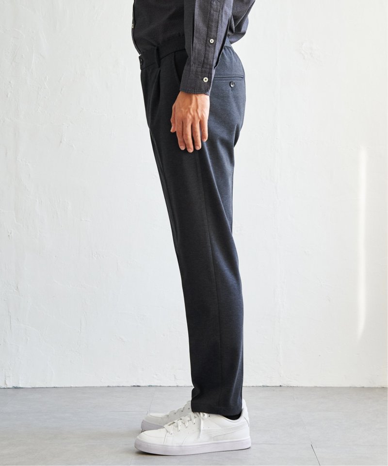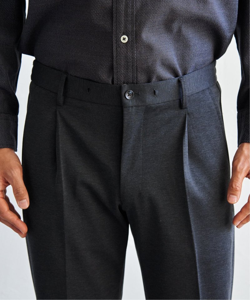 独特の陰影を生み出すバーズアイカノコ素材を使用したタック入りテーパードパンツ。伸縮性のある生地が快適な履き心地を叶え、ビジネスから週末のスマートカジュアルまで幅広く対応する。【素材】独特の陰影が特徴なバーズアイカノコ素材。【デザイン】センタークリースの入ったタックテーパードパンツ。ジャージ素材で伸縮性もあり履きやすい。【ikkaポイント】一部店舗限定のプレミアムな「ブラックネーム」シリーズ。張り感のあるバーズアイカノコを使用し、ビジネスシーンでも使いやすく、休日のおしゃれ着などにもお使いいただけます。【おすすめコーディネート】同シリーズ、別売りのジャケットとセットアップで着用可能です。・BLKバーズアイカノコジャケット 品番 50110074