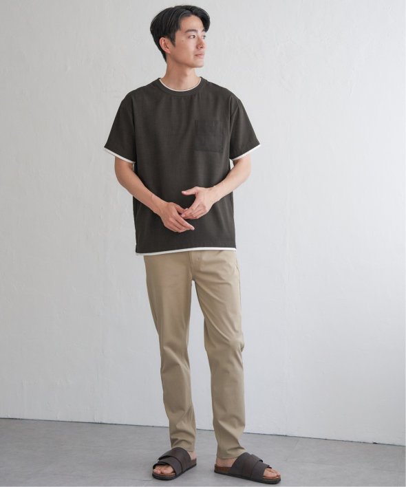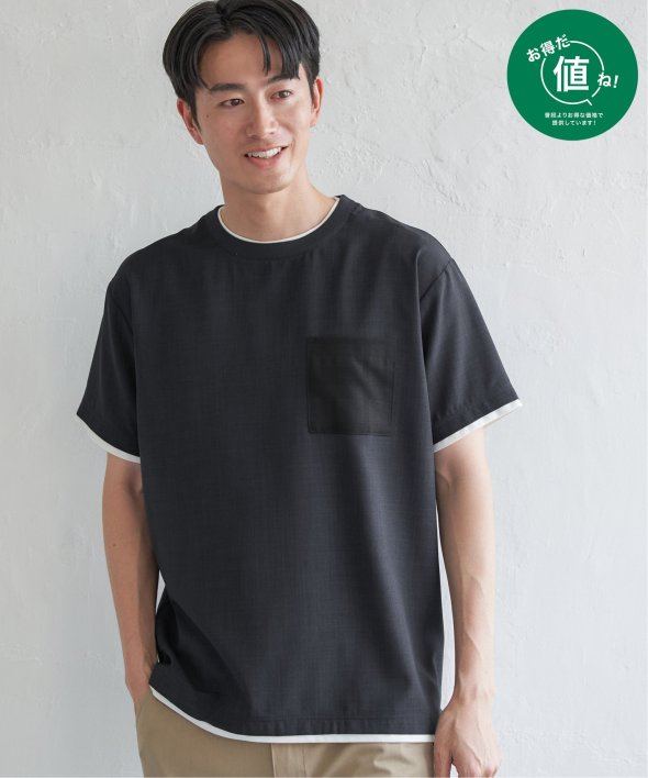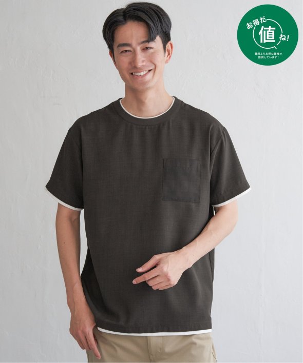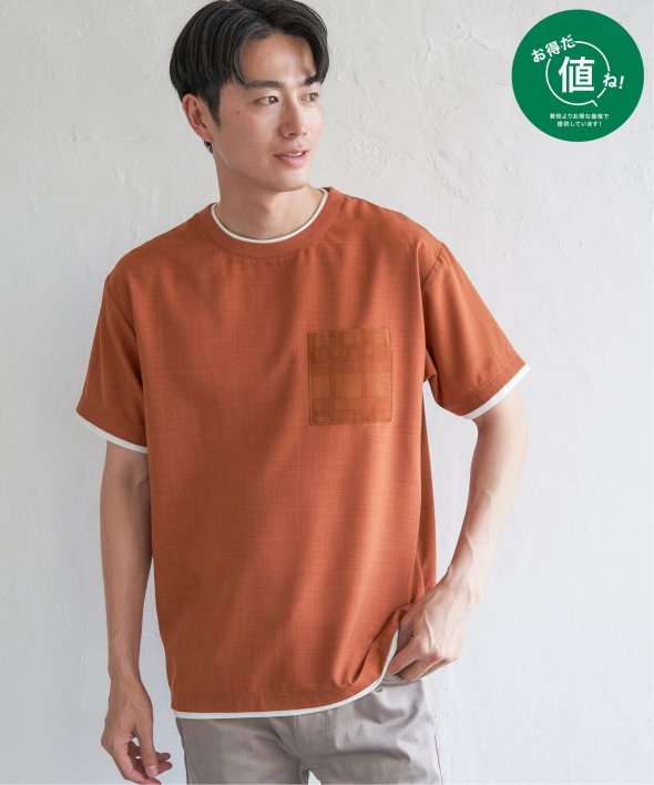 一枚で“重ね着風”のニュアンスが叶う、レイヤードデザインのシャツT。襟、袖口、裾にインナーを覗かせたような切り替えが施されており、シンプルながらも視線を引きつける一枚です。【素材】さらりとしたリネンライクなポリエステル。シワになりにくく、お手入れも簡単です。【デザイン】胸ポケットはさりげなく表情を添える、同色のグレンチェック生地で切り替え。ほんのりアクセントを効かせながらも、主張しすぎず上品な印象です。■ お得だ値 (ね)!とは?普段より「お得な価格」で提供している商品です。- コストダウンの取り組み -・生産地を見直し、製造コストをダウン・工場の閑散期に生産することで、製造コストをダウン・オリジナル素材を開発し、素材コストをダウン今シーズンは「値下げ」をしない安心価格です!