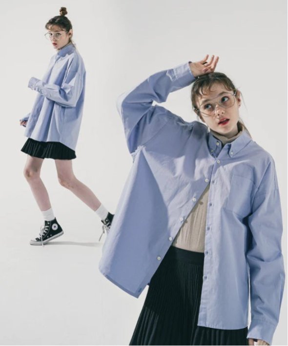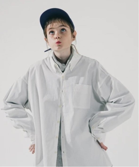 たっぷりな身幅で羽織のようも使えるシンプルなコットン素材のオーバーシャツ。