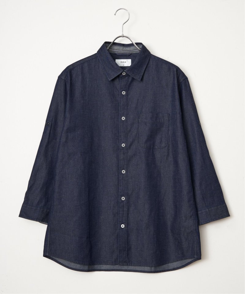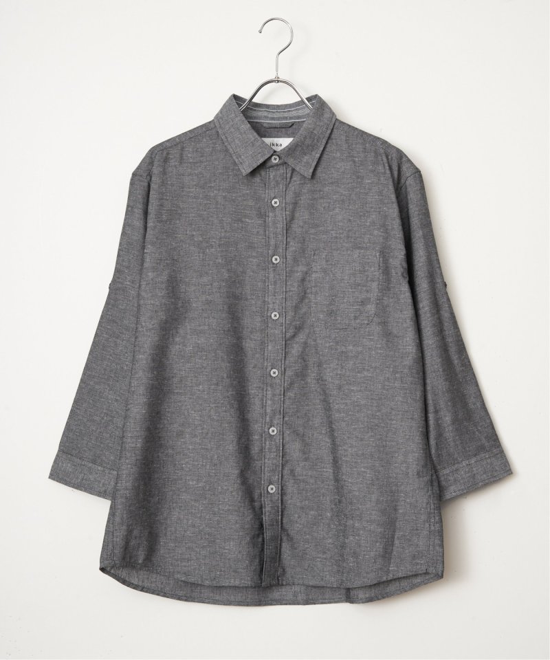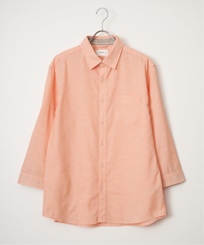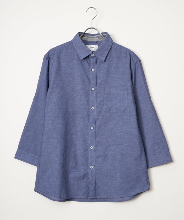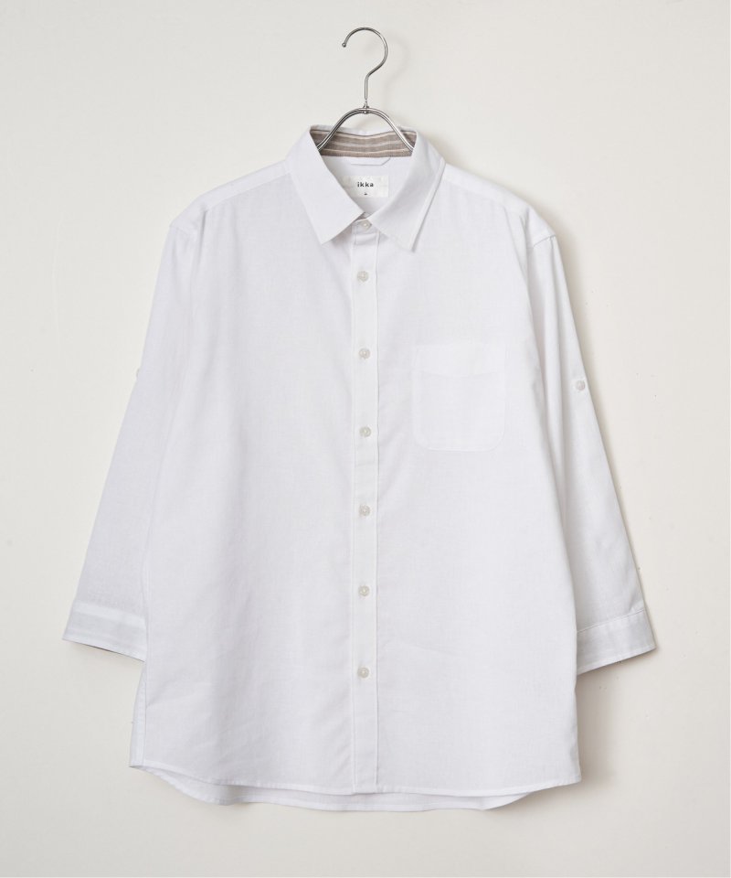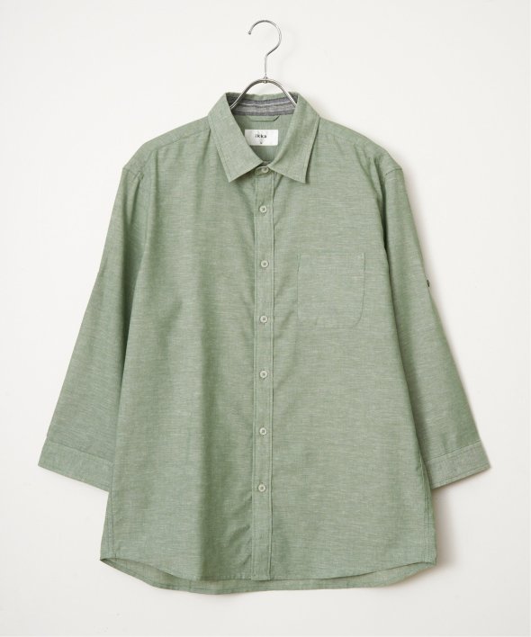 速乾性とイージーケア加工が施された、お手入れが楽な7分袖レギュラーカラーリネン無地シャツ。