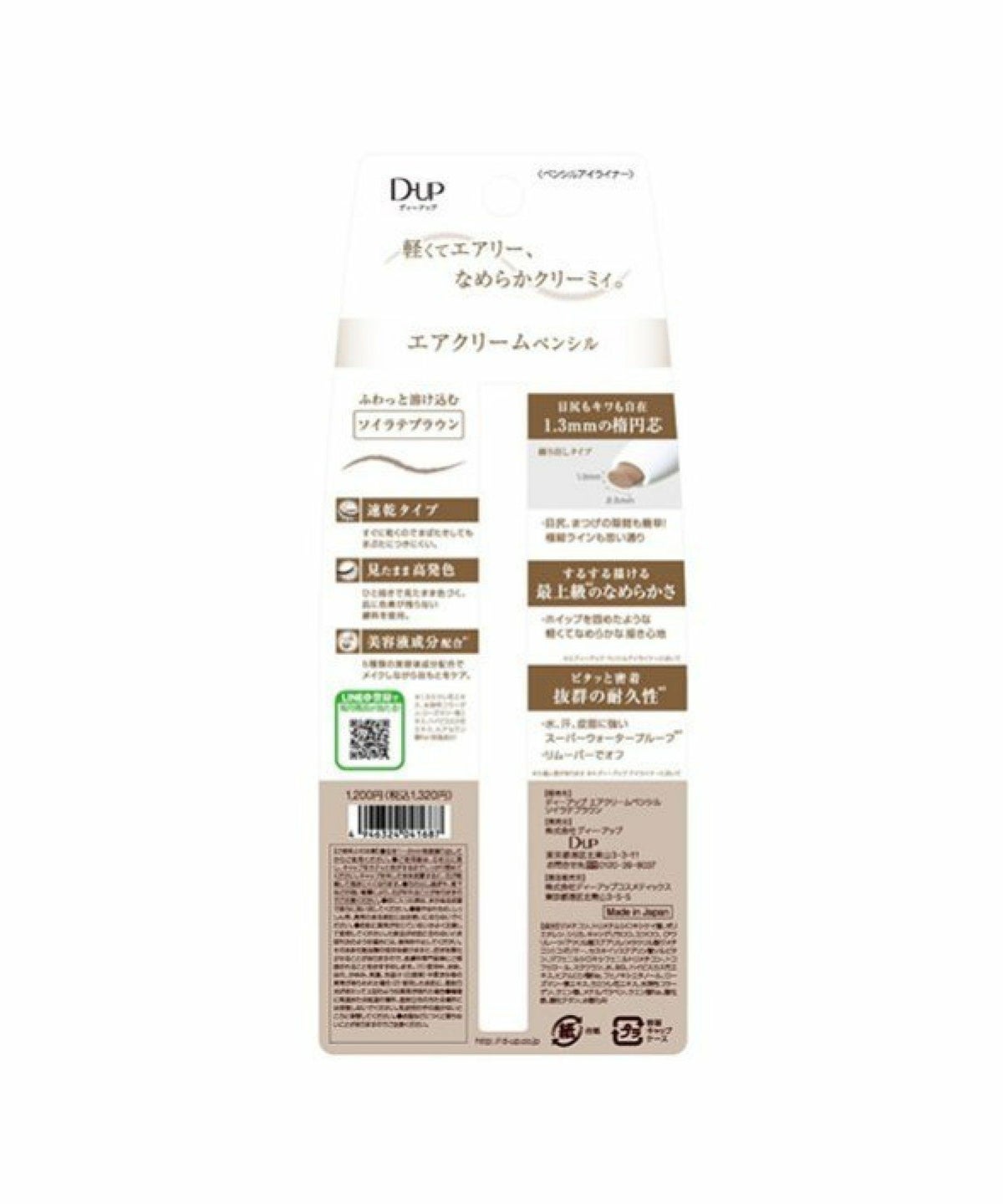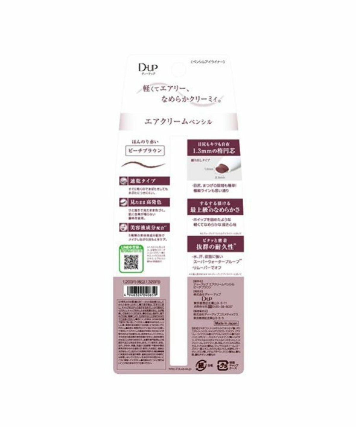ROU 他の画像を見る 軽くてなめらかな描き心地のペンシルアイライナー 目尻もキワも自在。繰り戻せる楕円芯 ディー・アップ D.U.P エアクリームペンシル ピーチブラウン ディーアップ D-UP エアクリームペンシル ピーチブラウン ¥ 1,320 税込 カートに入れる お気に入りに登録する