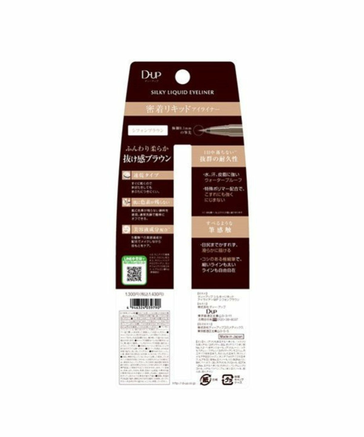 ROU 他の画像を見る 密着リキッドアイライナー すべるような描き心地 ディー・アップ D.U.P シルキーリキッドアイライナー ウォータープルーフ シフォンブラウン ディーアップ D-UP シルキーリキッドアイライナー WP シフォンブラウン ¥ 1,430 税込 カートに入れる お気に入りに登録する