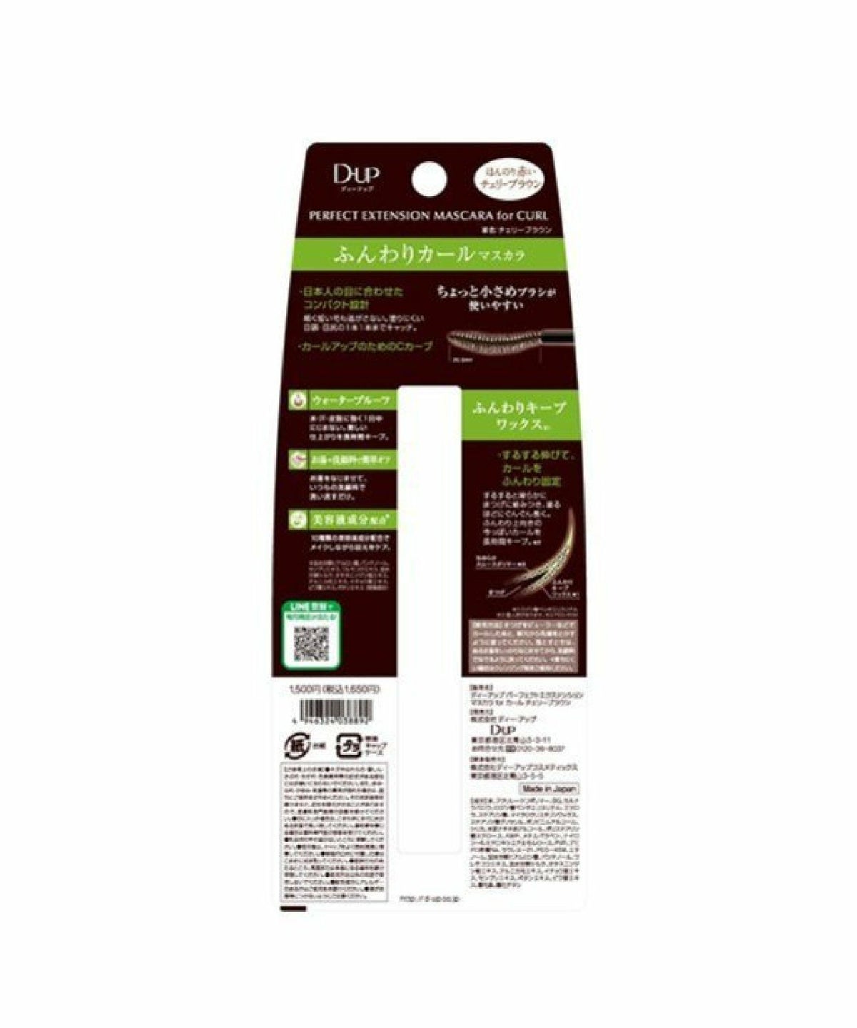 ROU 他の画像を見る 根元から立上げるリフトアップカールブラシ お湯と洗顔でオフ ディー・アップ D.U.P パーフェクトエクステンションマスカラ for カール チェリーブラウン ディーアップ D-UP パーフェクトエクステンションマスカラ for カール チェリーブラウン ¥ 1,650 税込 カートに入れる お気に入りに登録する