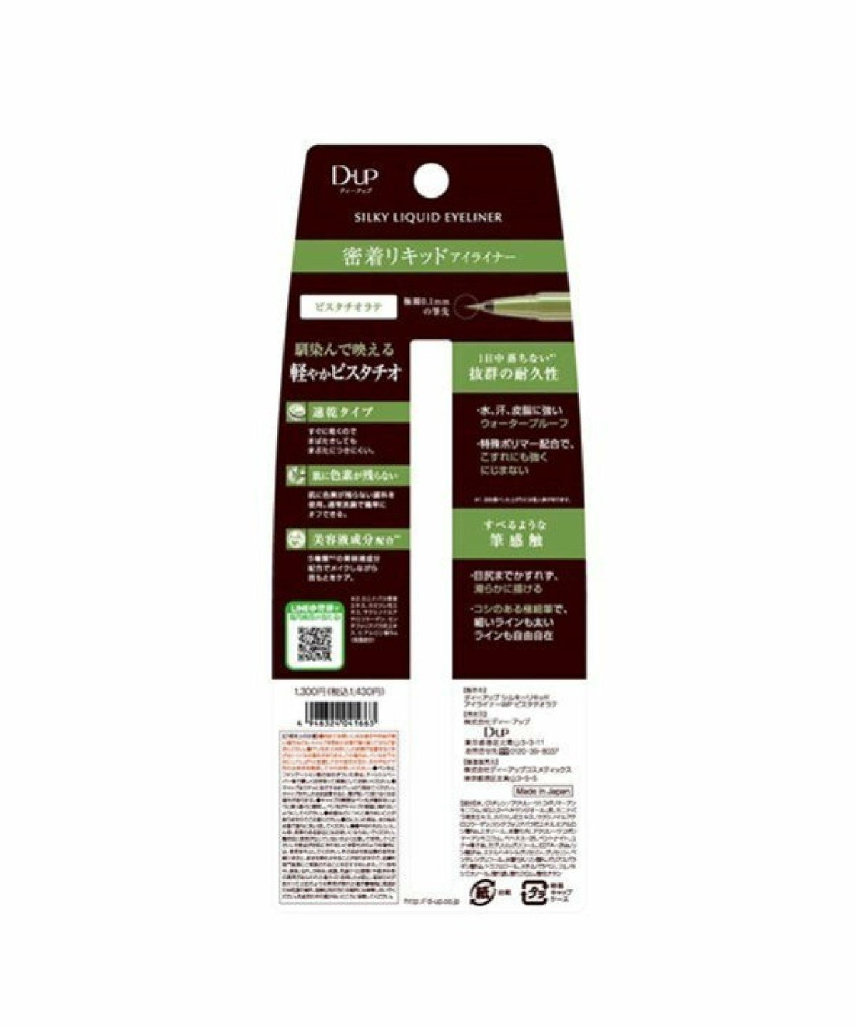 ROU 他の画像を見る 密着リキッドアイライナー すべるような描き心地 ディー・アップ D.U.P シルキーリキッドアイライナー ウォータープルーフ ピスタチオラテ ディーアップ D-UP シルキーリキッドアイライナー WP ピスタチオラテ ¥ 1,430 税込 カートに入れる お気に入りに登録する