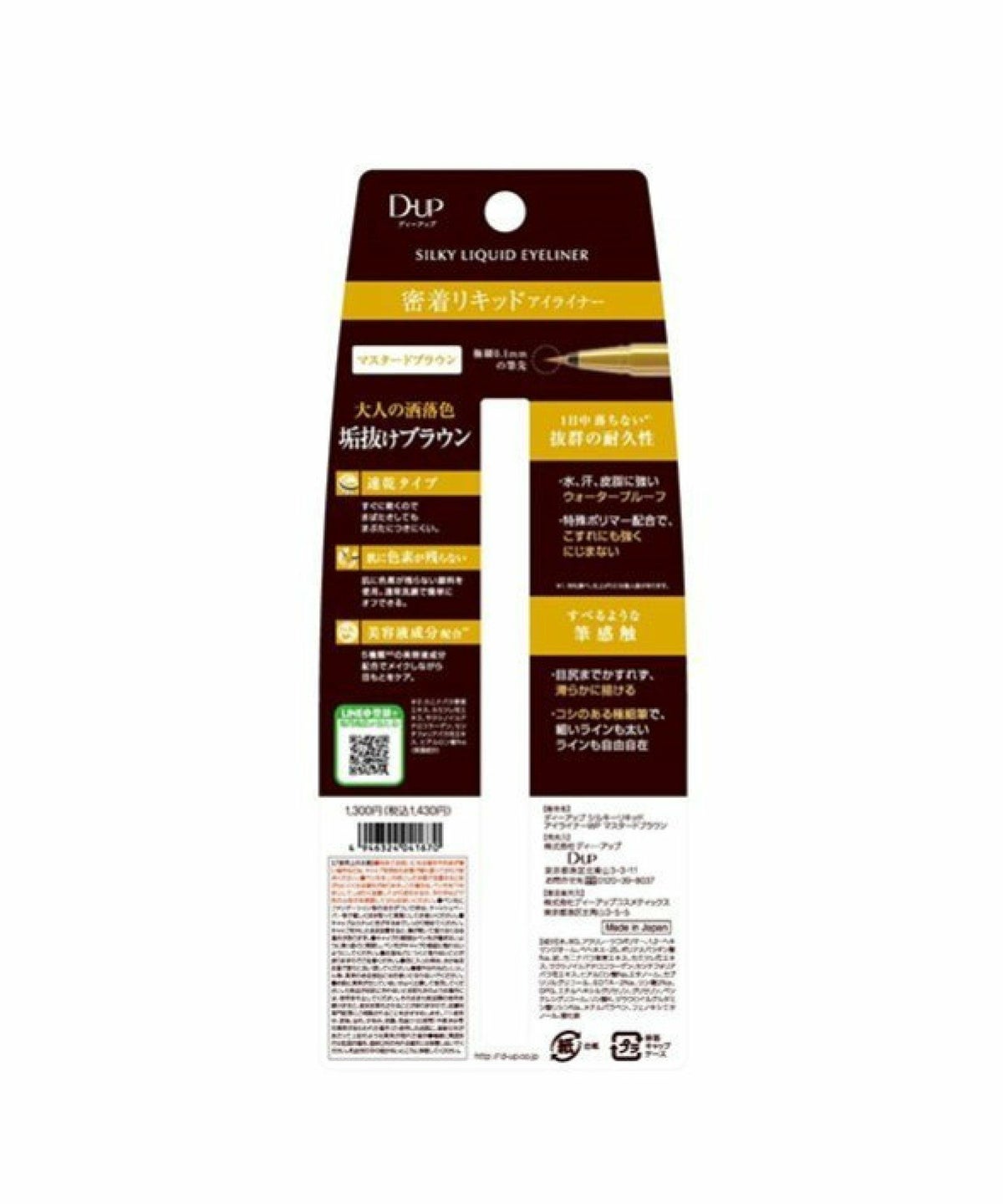 ROU 他の画像を見る 密着リキッドアイライナー すべるような描き心地 ディー・アップ D.U.P シルキーリキッドアイライナー ウォータープルーフ マスタードブラウン ディーアップ D-UP シルキーリキッドアイライナー WP マスタードブラウン ¥ 1,430 税込 カートに入れる お気に入りに登録する