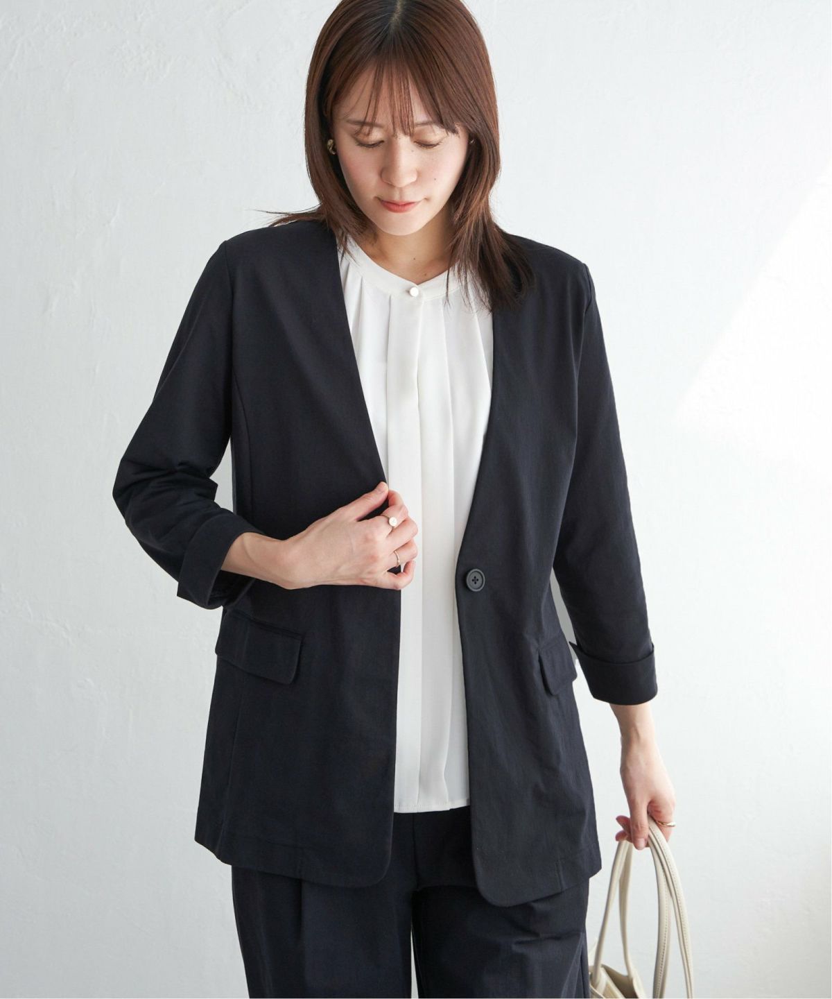 ikka モアオフ最大3000off 他の画像を見る オフィスでも活躍する、ベーシックな美シルエット 【セットアップ対応】GOKU楽ワークノーカラージャケット ¥ 7,689 税込 カートに入れる お気に入りに登録する