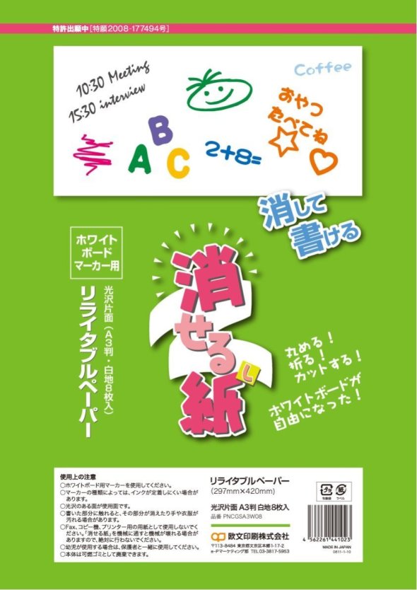 ■持ち運び可能な、紙製のホワイトボード