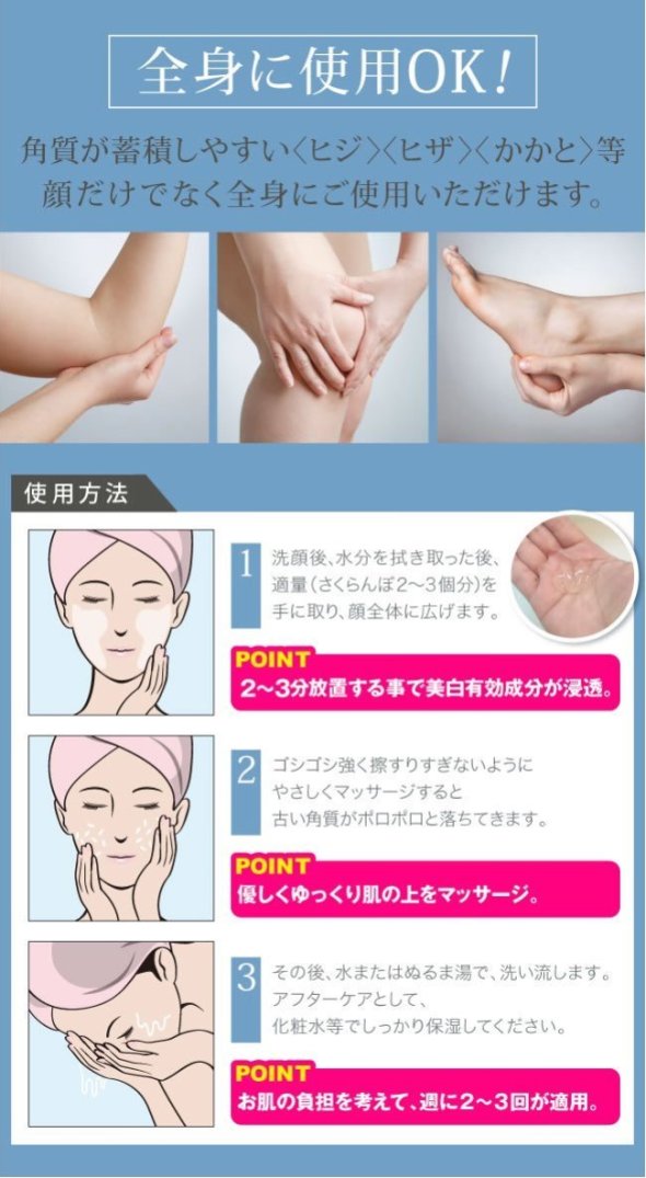 ■こちらは2本組での販売です。■古い角質や毛穴汚れもスッキリ!■有効成分がメラニンの生成を抑えて、しみやそばかすを防ぎ、透明感のある肌へ導いてくれます。■角質が蓄積しやすいヒジ、ヒザ、かかとなど、全身にお使いいただけます。■グレープフルーツの香りで使用中もさわやか■販売名/Pホワイトゲル M【効能・効果】肌あれ。あれ性。にきびを防ぐ。油性肌。メラニンの生成を抑え、しみ、そばかすを防ぐ。日やけ・雪やけ後のほてりを防ぐ。肌をなめらかにする。皮膚を清浄にする。【内容量】120g×2本