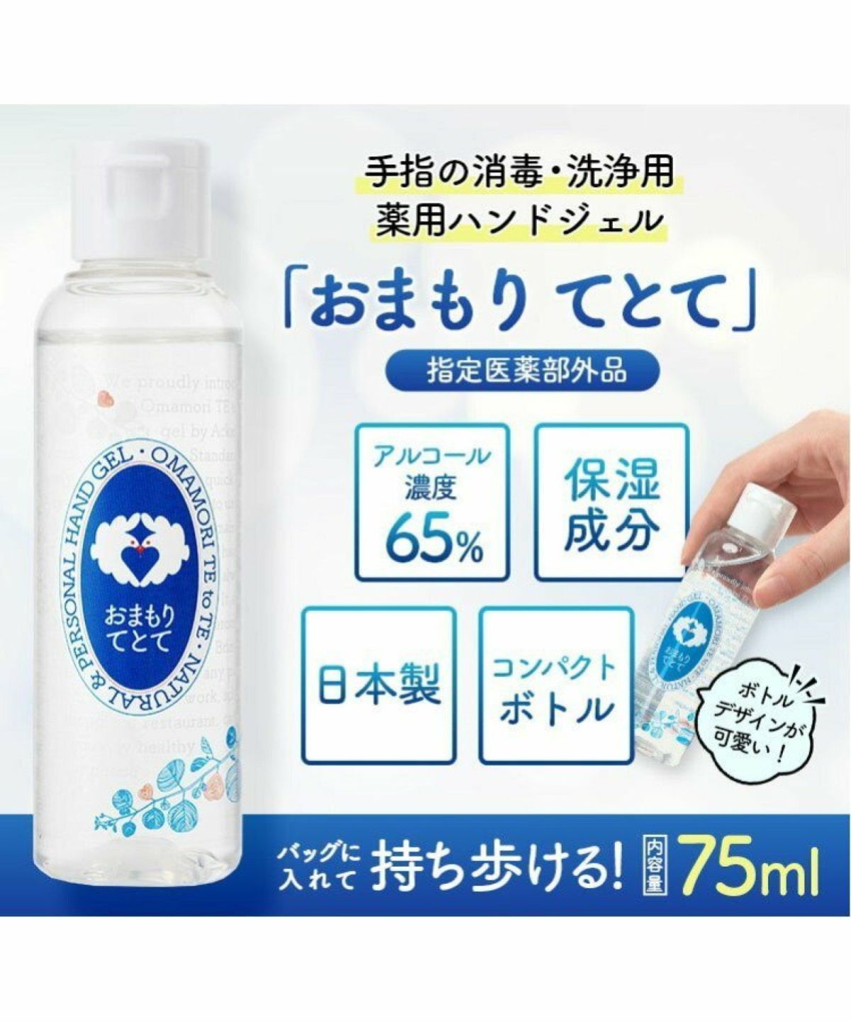 他の画像を見る コンパクトサイズで持ち運びにも!外出先や出先での食事の際にさっと消毒 薬用ハンドジェル おまもり てとて 75mL 5本組 【医薬部外品】 薬用ハンドジェル おまもり てとて 75mL 5本セット 【医薬部外品】 ¥ 2,400 税込 コンパクトサイズで持ち運びにも!外出先や出先での食事の際にさっと消毒 薬用ハンドジェル おまもり てとて 75mL 5本組 【医薬部外品】 カートに入れる お気に入りに登録する