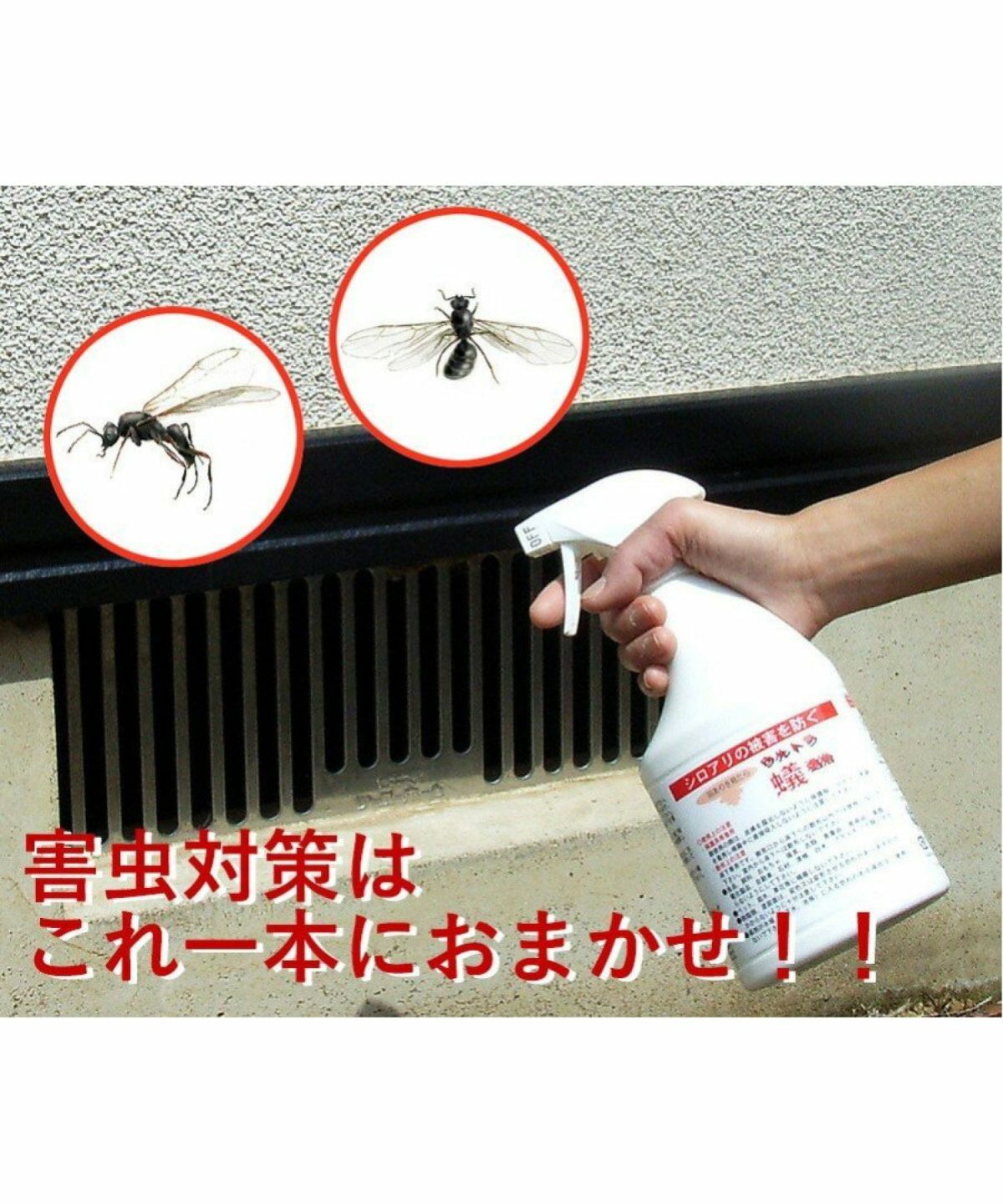 他の画像を見る 床下換気口から床下に噴霧することでシロアリの防除ができる ウルトラ蟻退治 500mL 床下散布専用 ウルトラ蟻退治 500mL 床下散布専用 ¥ 2,178 税込 床下換気口から床下に噴霧することでシロアリの防除ができる ウルトラ蟻退治 500mL 床下散布専用 カートに入れる お気に入りに登録する