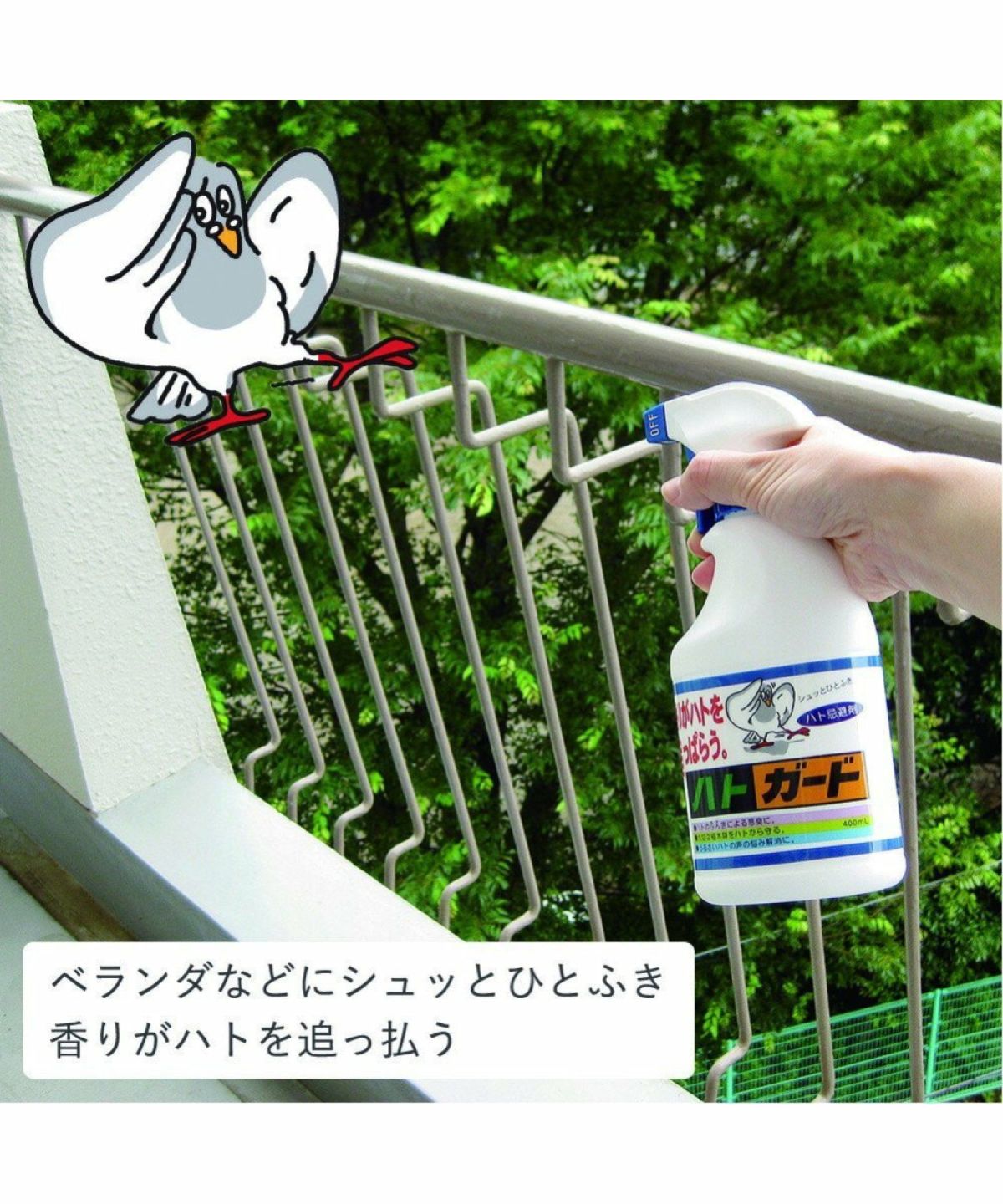 他の画像を見る ベランダなどにシュッとひとふき。香りがハトを追っぱらう。 ハトガード 400mL 鳩対策 スプレー 忌避剤 ハトガード 400mL 鳩対策 スプレー 忌避剤 ¥ 1,980 税込 ベランダなどにシュッとひとふき。香りがハトを追っぱらう。 ハトガード 400mL 鳩対策 スプレー 忌避剤 カートに入れる お気に入りに登録する