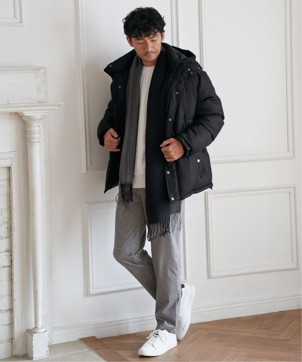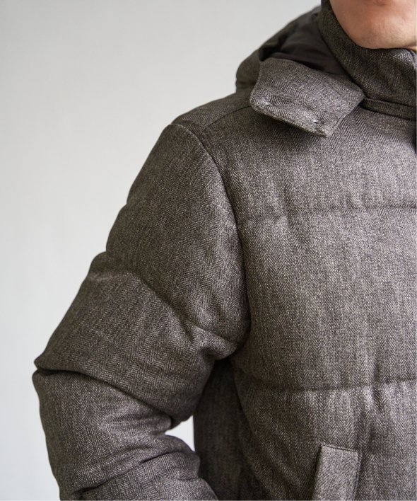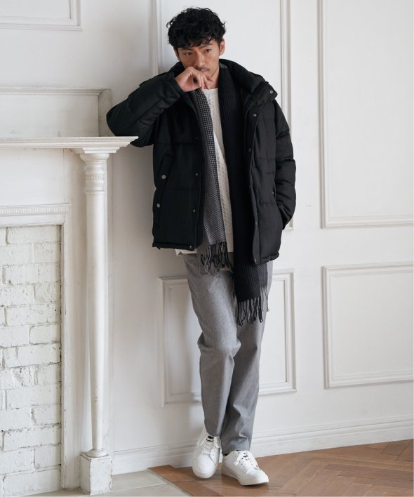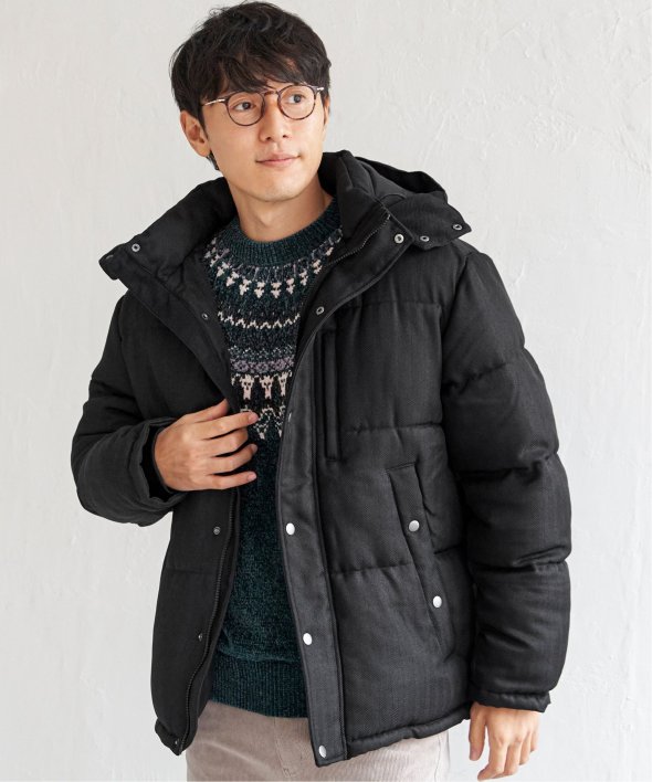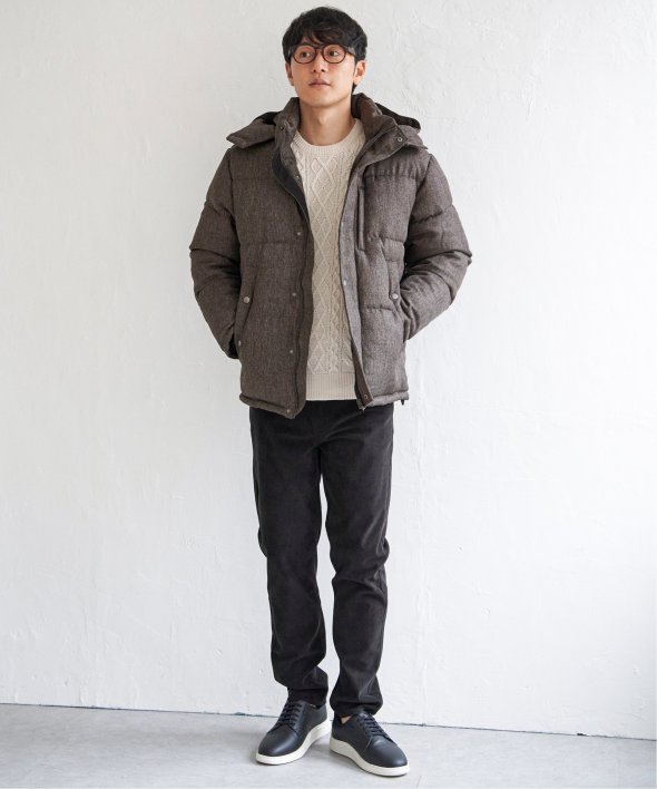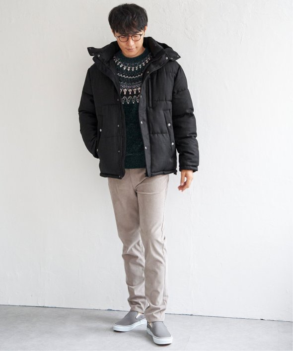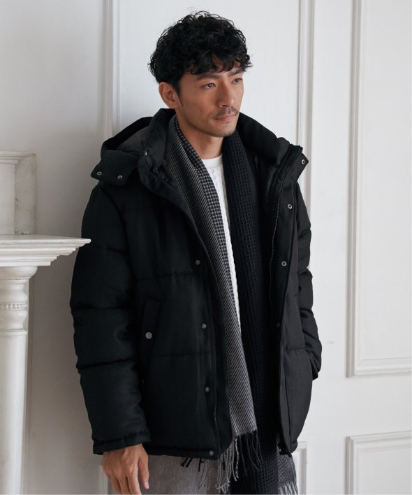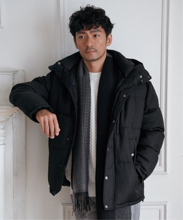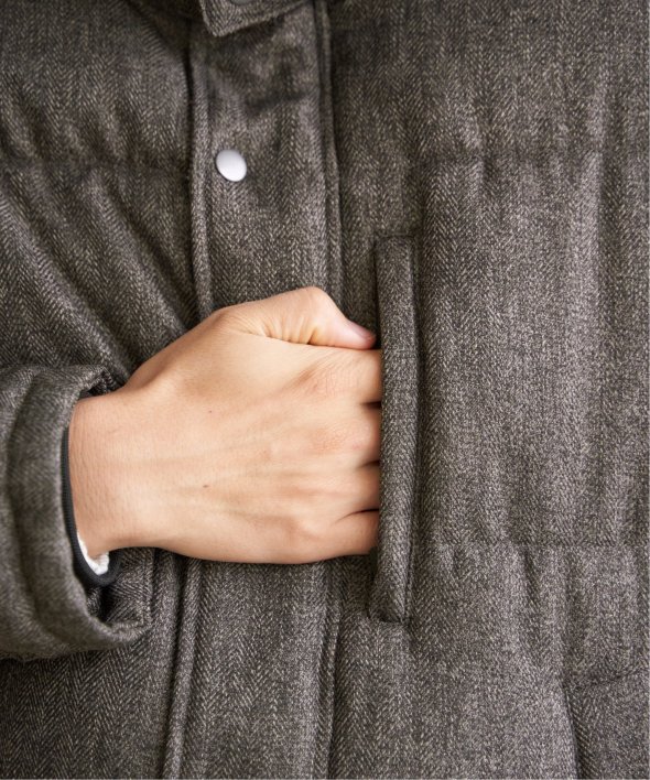 表情のあるツイード見え素材を使用した中綿ブルゾンです。