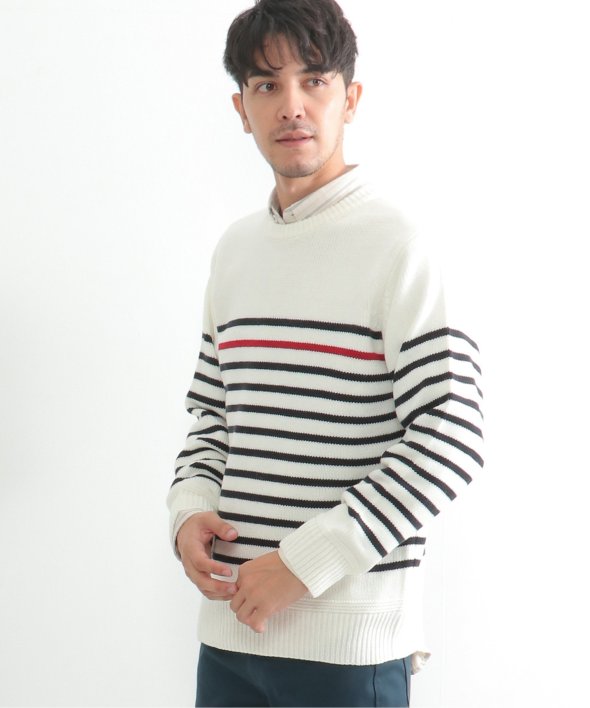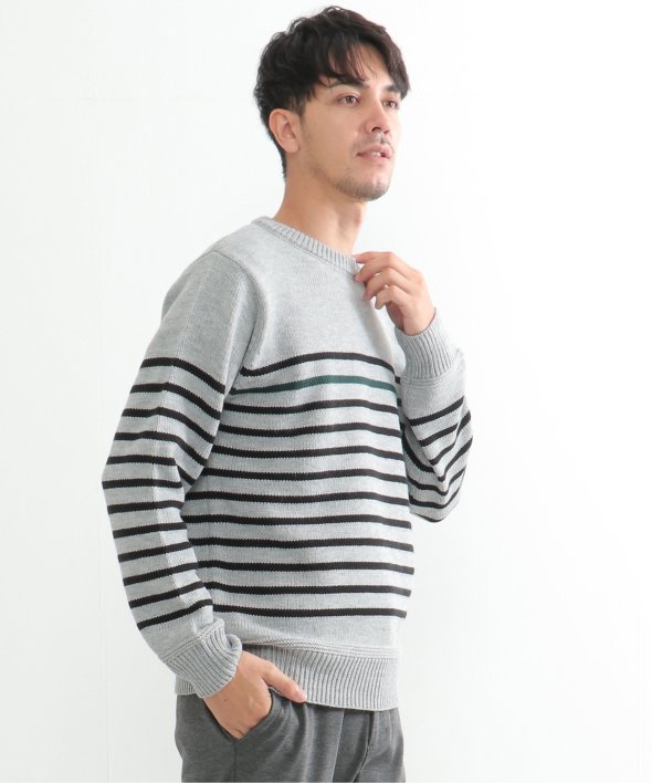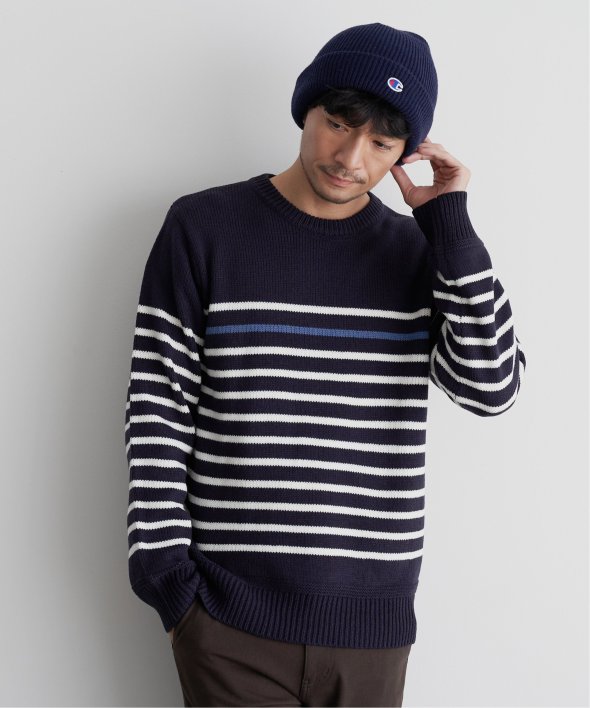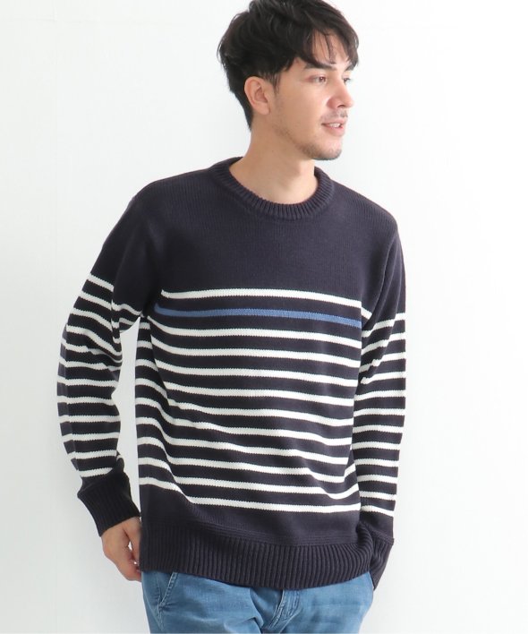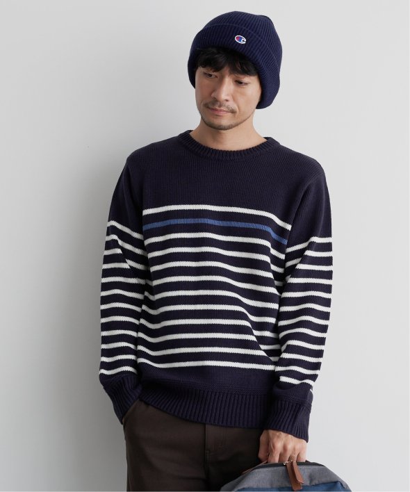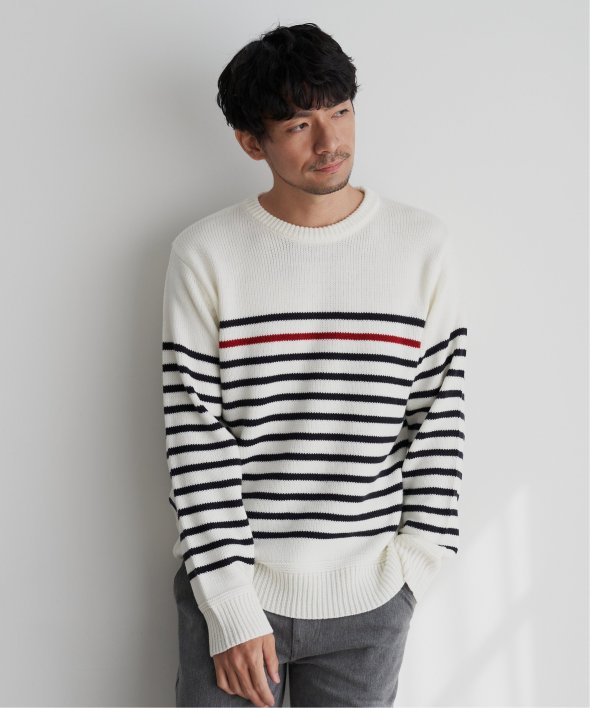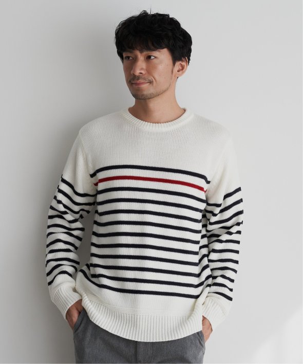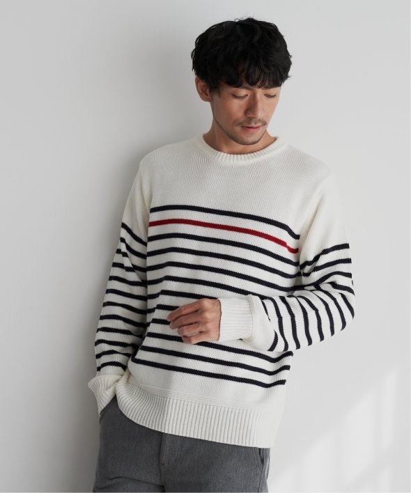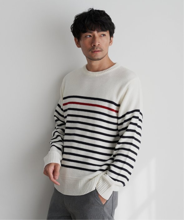 ライン1本が別配色になったパネルボーダーニット。