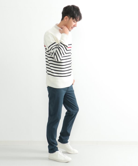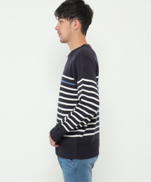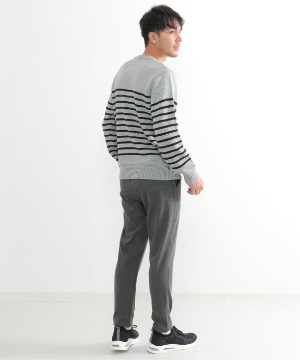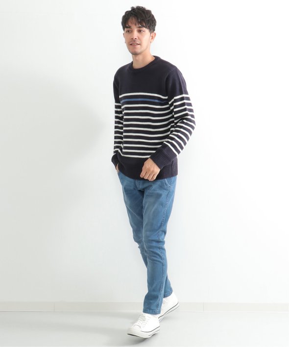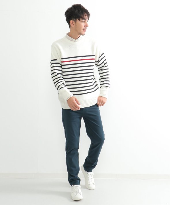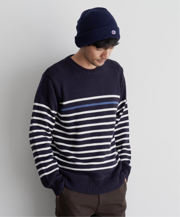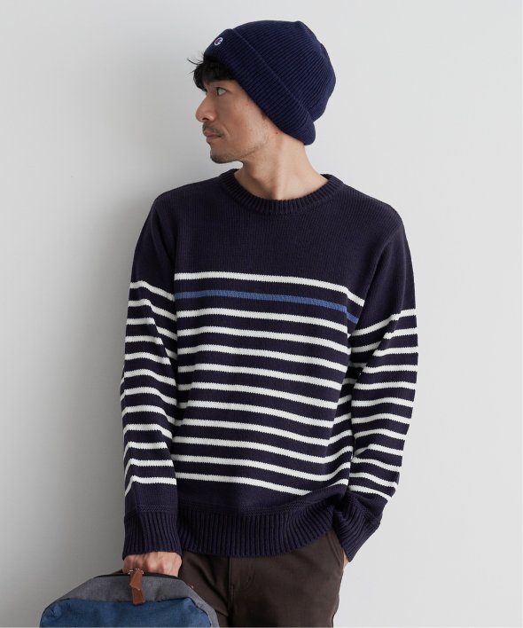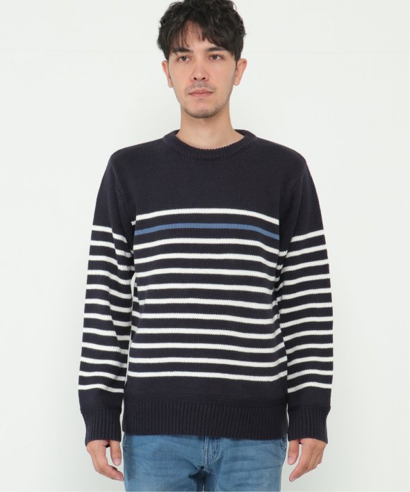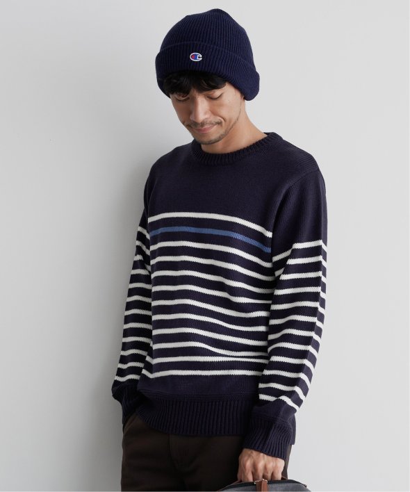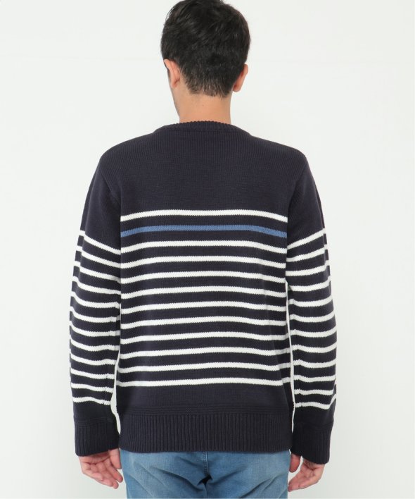 ライン1本が別配色になったパネルボーダーニット。