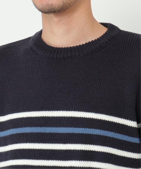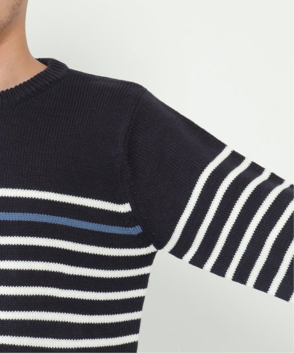 ライン1本だけが別配色になったパネルボーダーのクルーネックニット。
