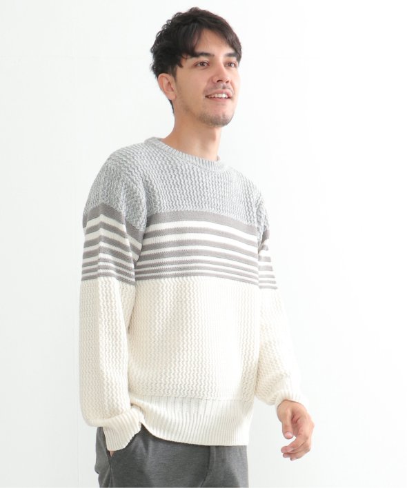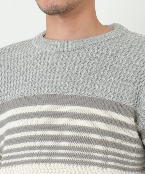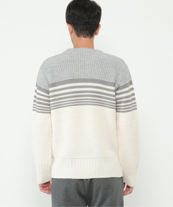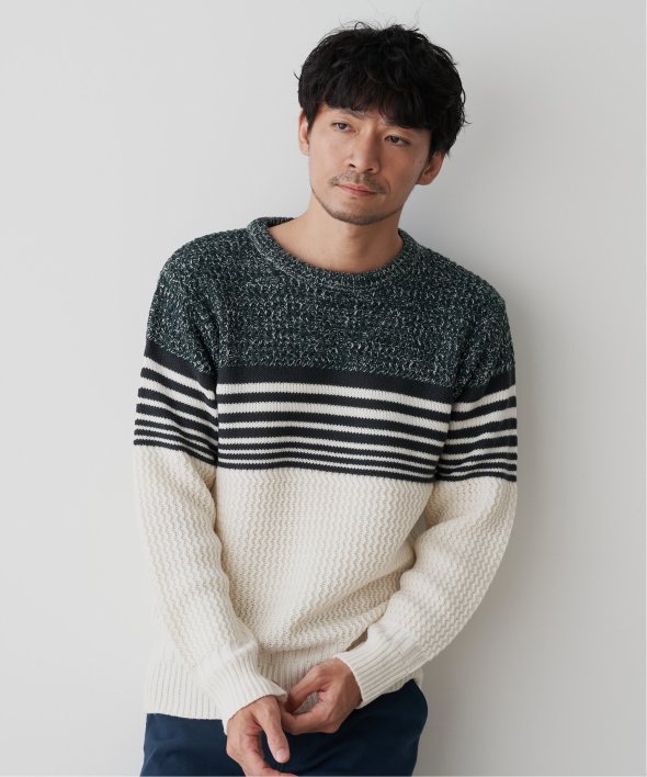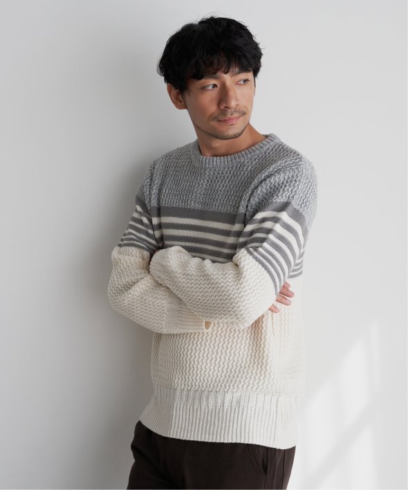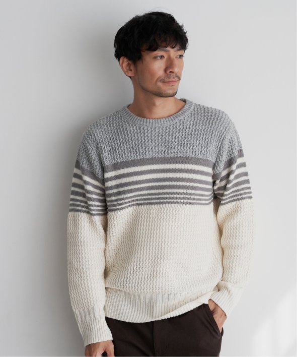 3種類の編地を使用した配色ボーダーニット。