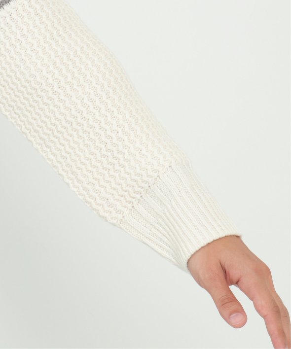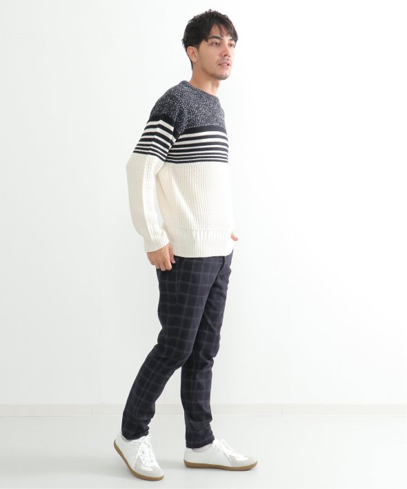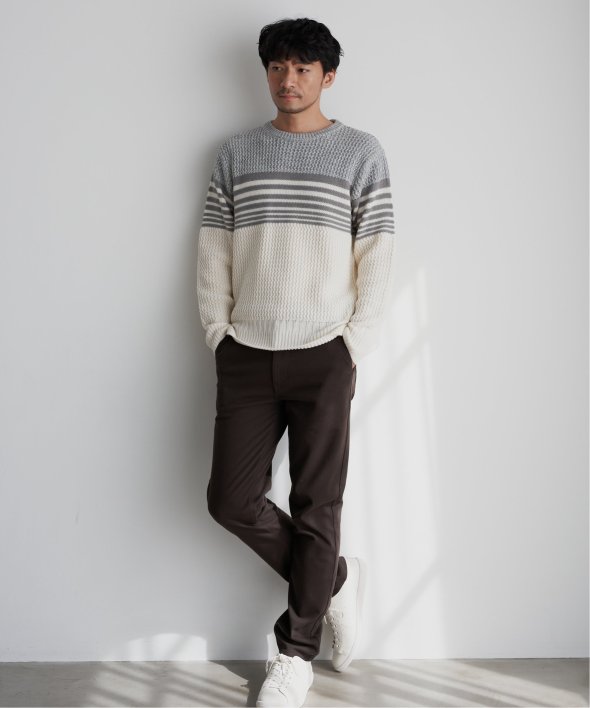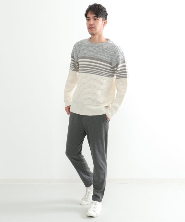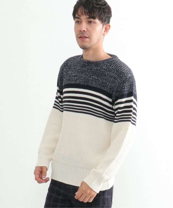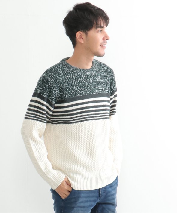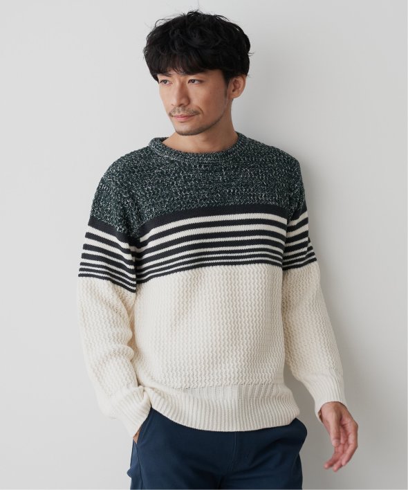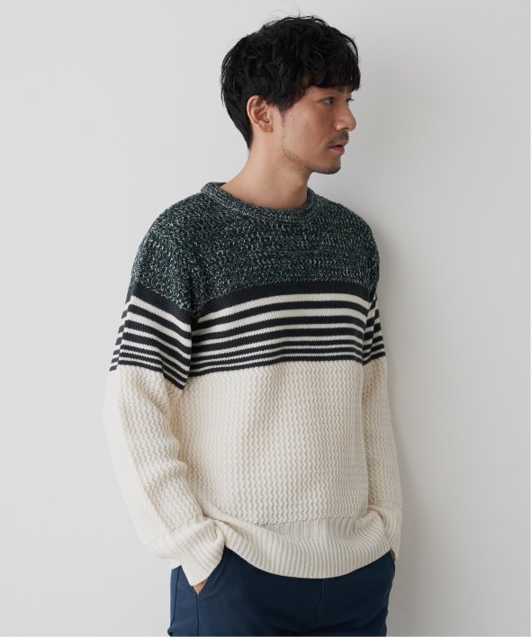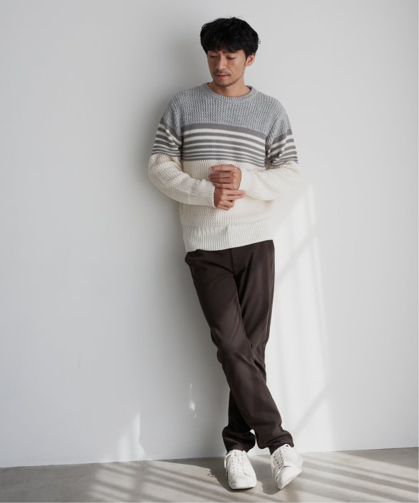 編地を切り替えたパネルボーダーニット。