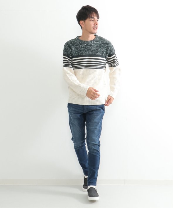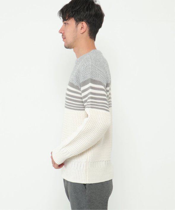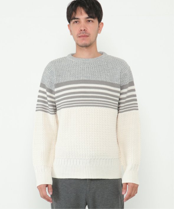 3種類の編地を使用した配色切替ボーダーニット。