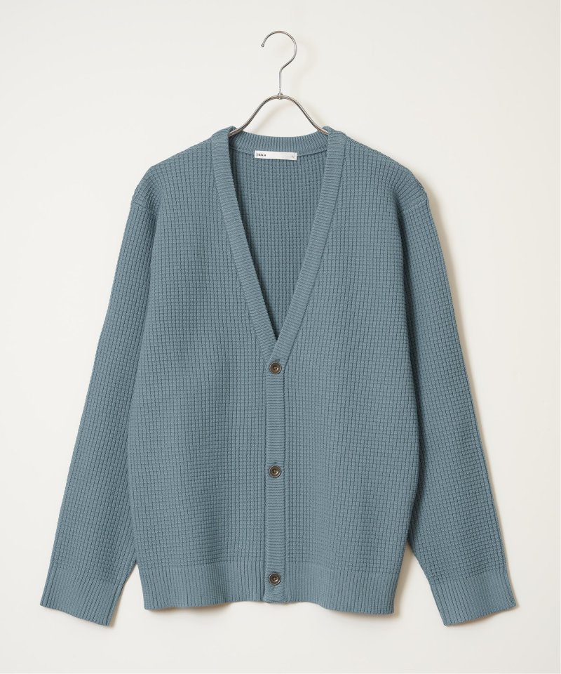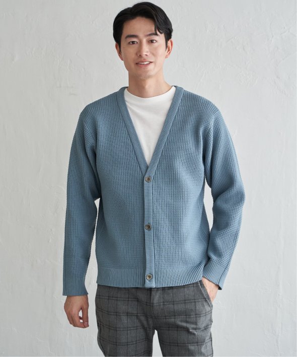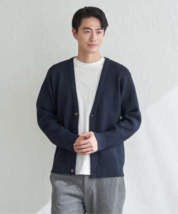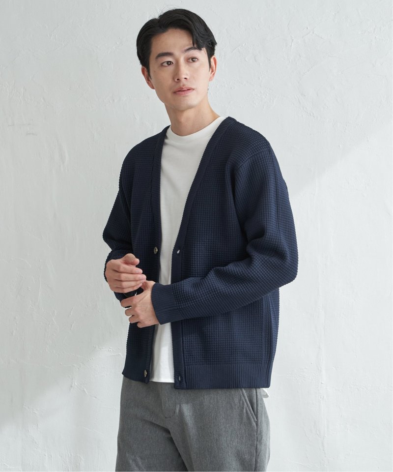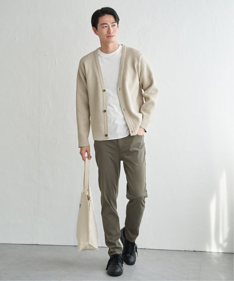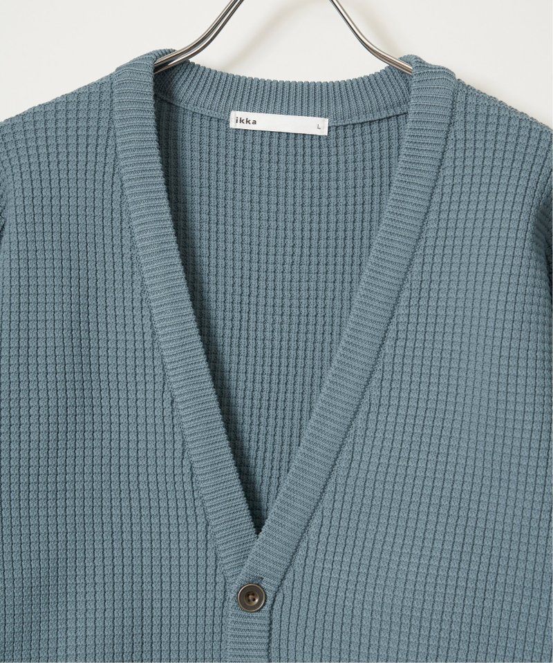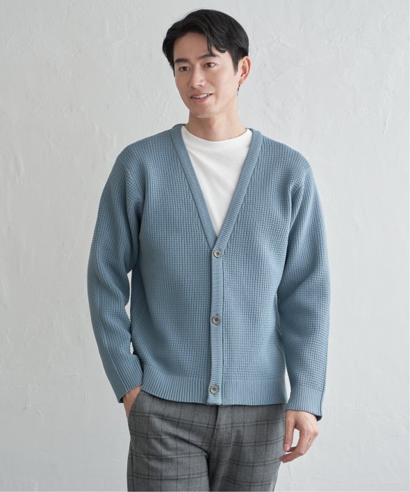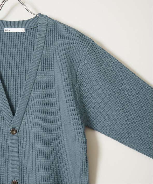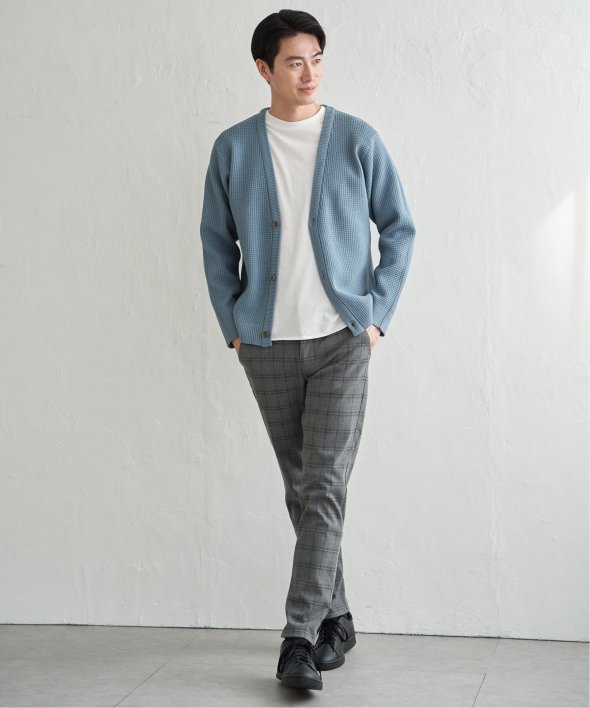 軽量なポリエステル素材で仕立てたニットカーディガンと、なめらかな天竺素材の長袖Tシャツを組み合わせたセットアイテム。