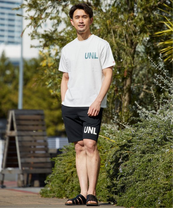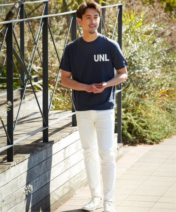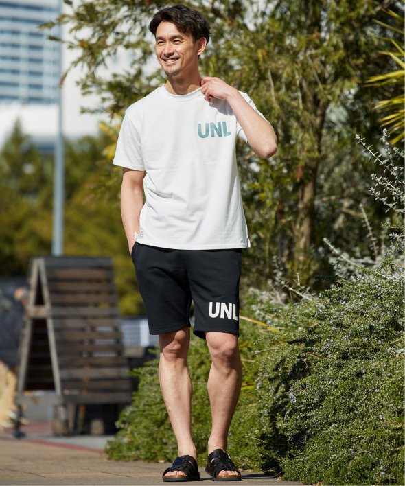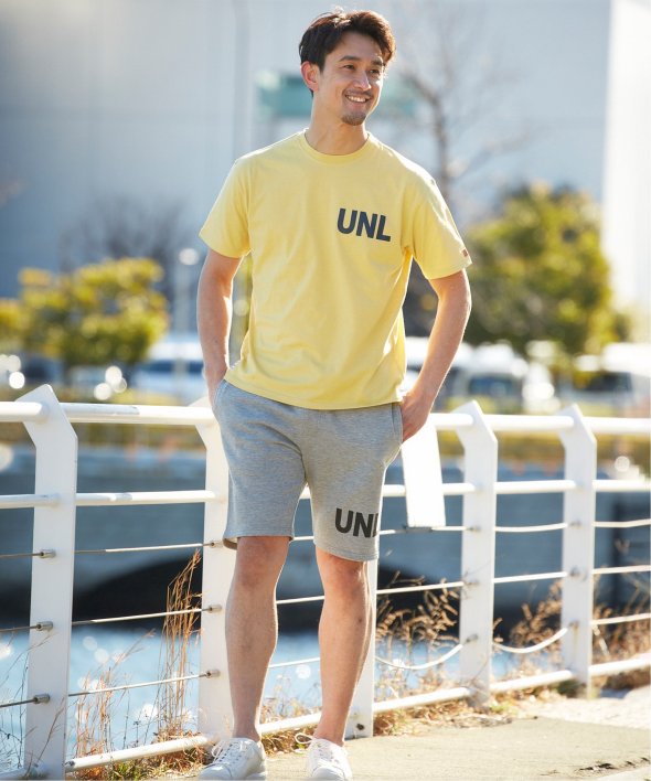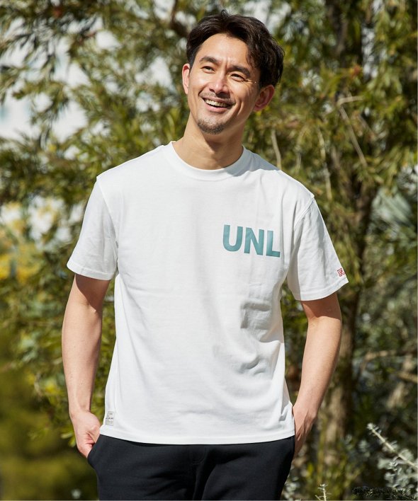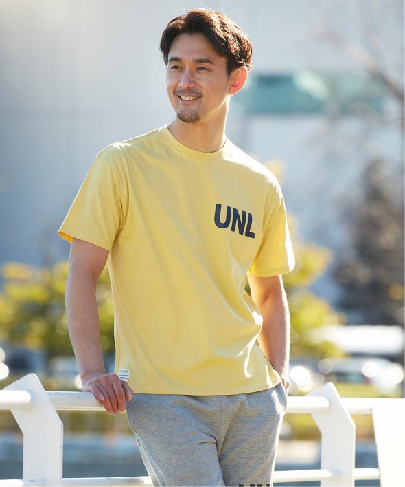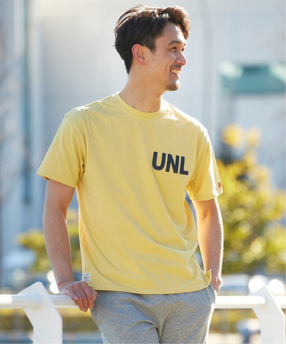 左胸にはブランドのイニシャル「UNL」がプリントで入っています。