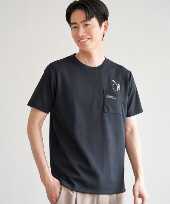 左胸に刺繍を施したポケットTシャツ。