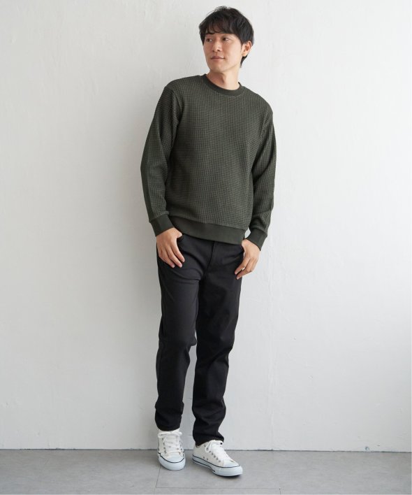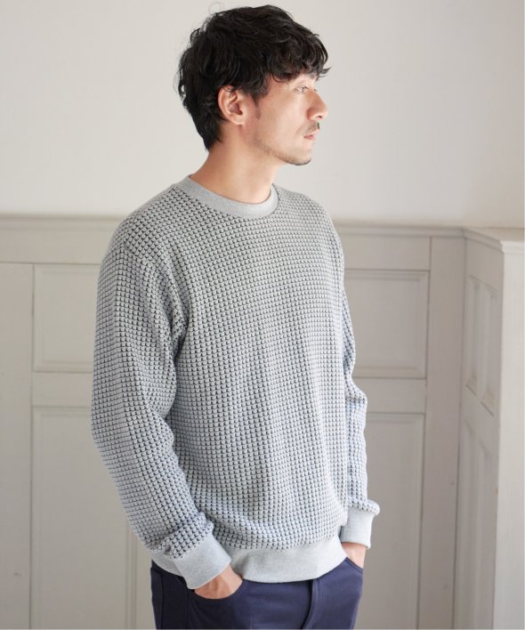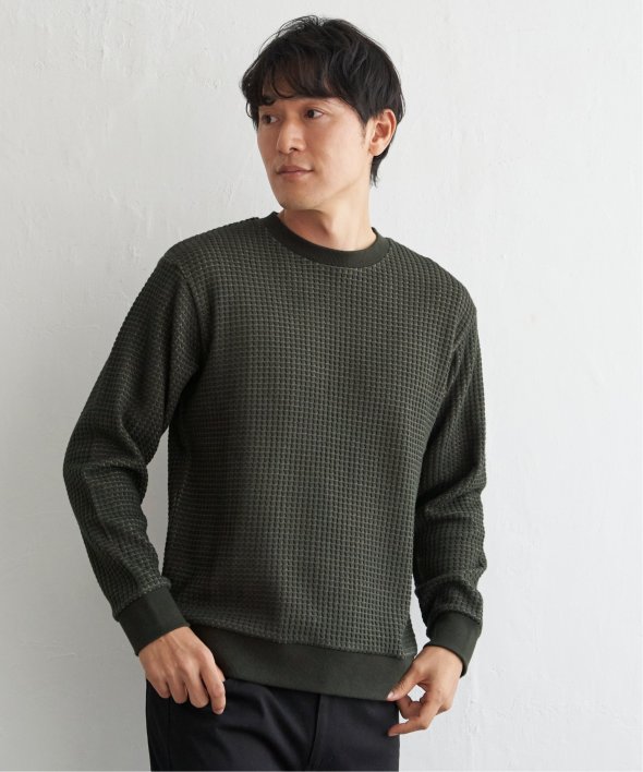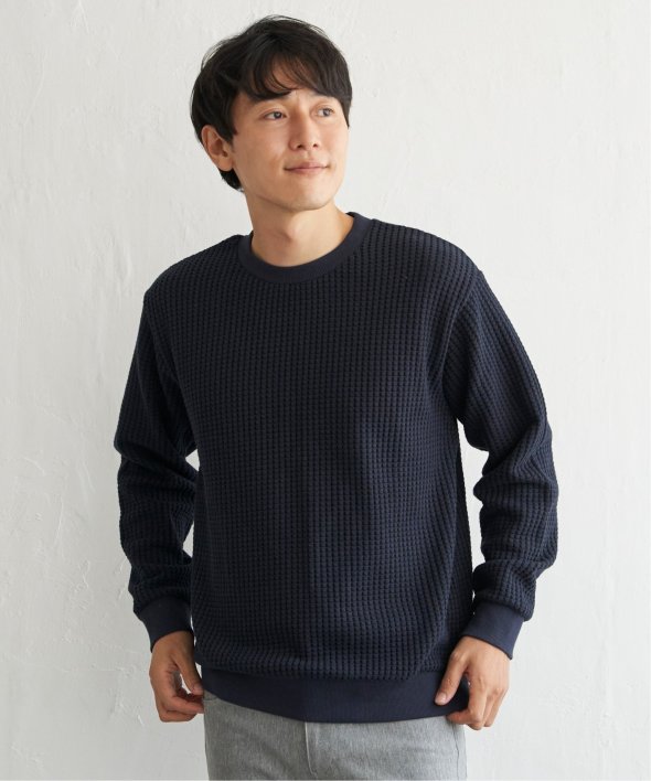 凹凸が特徴的なビッグワッフルのトレーナー。