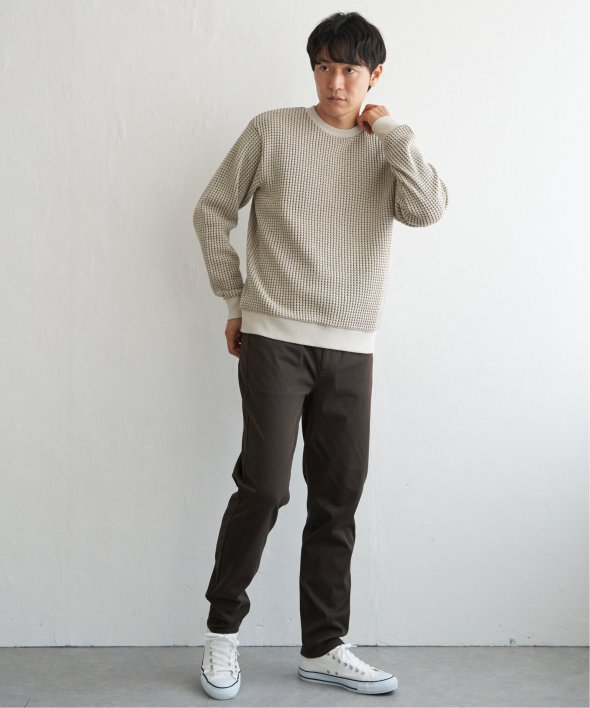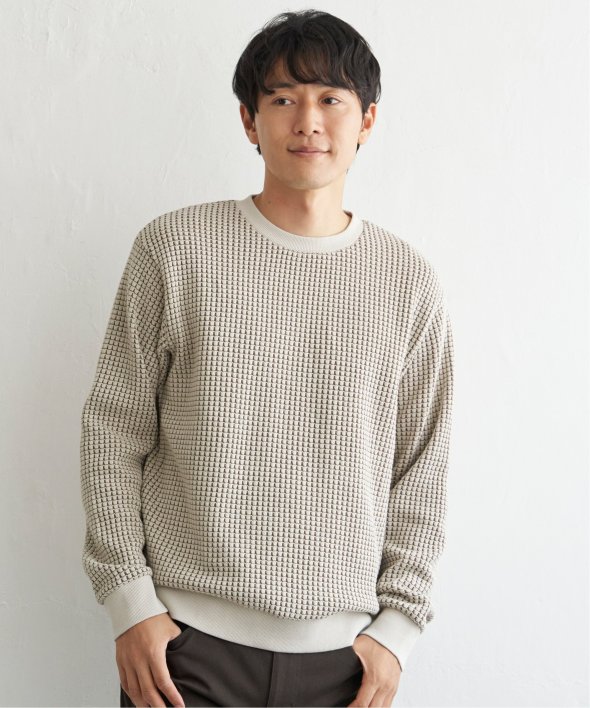 配色のワッフル生地で、奥行きのある見た目に仕上がったプルオーバー。