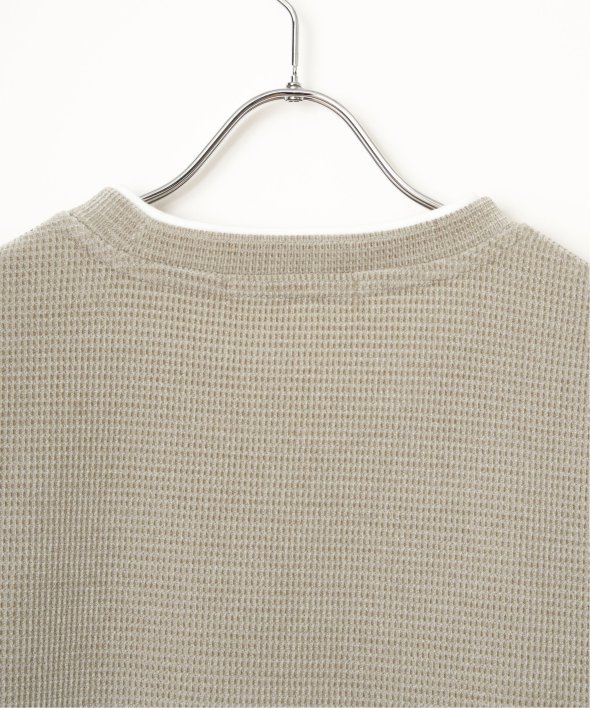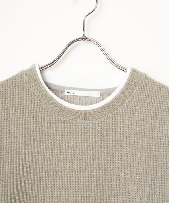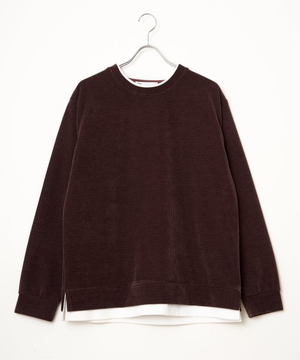 襟周りと裾がフェイクレイヤードになった、モールワッフル素材のプルオーバー。