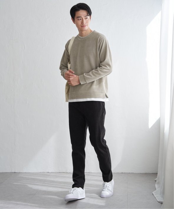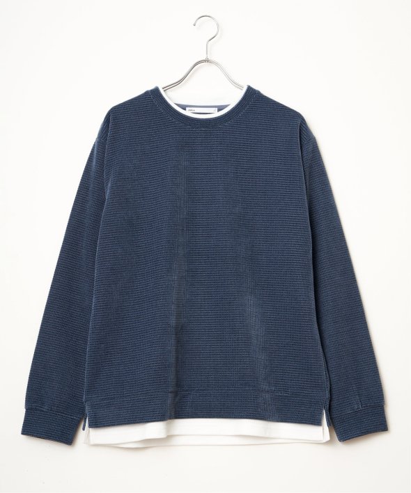 リアルなレイヤード感を再現したこだわりの一着 モールワッフルフェイクレイヤードプルオーバー